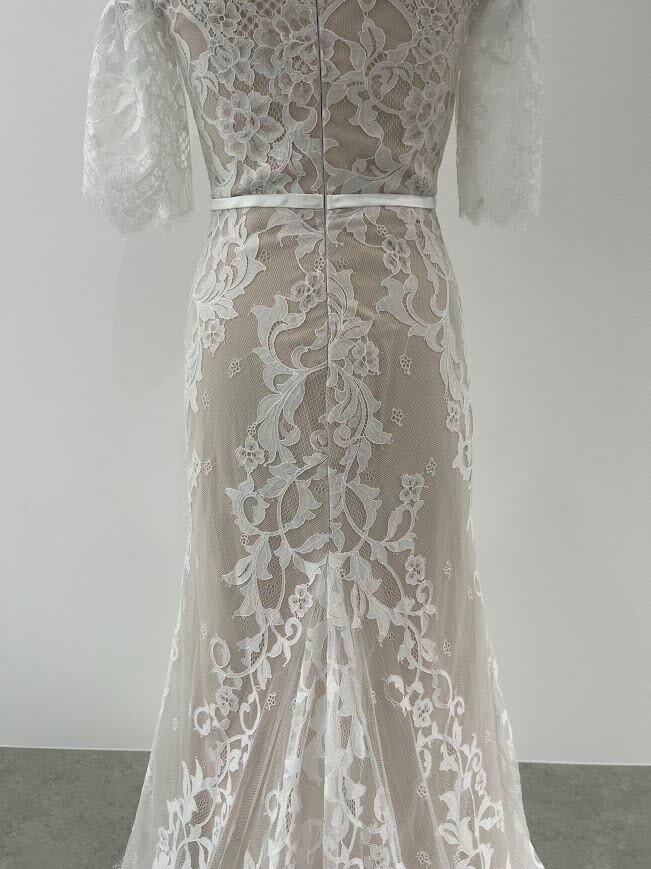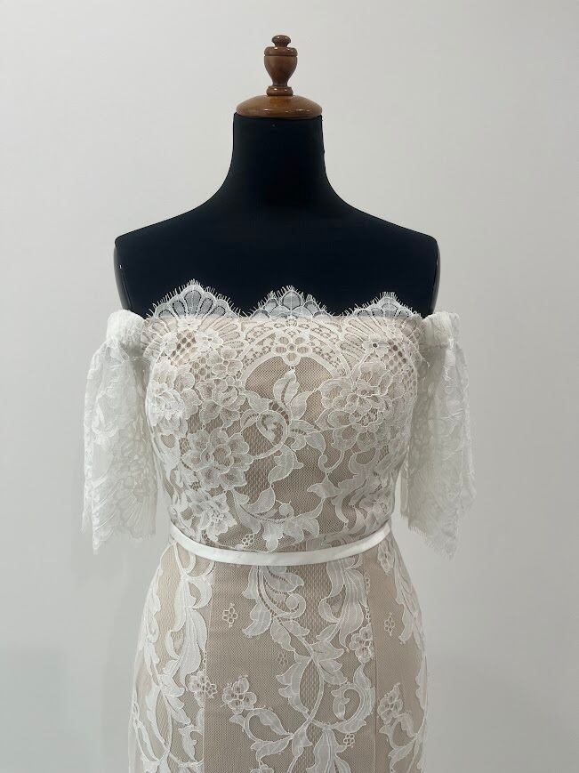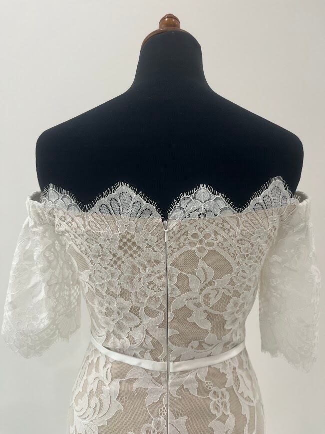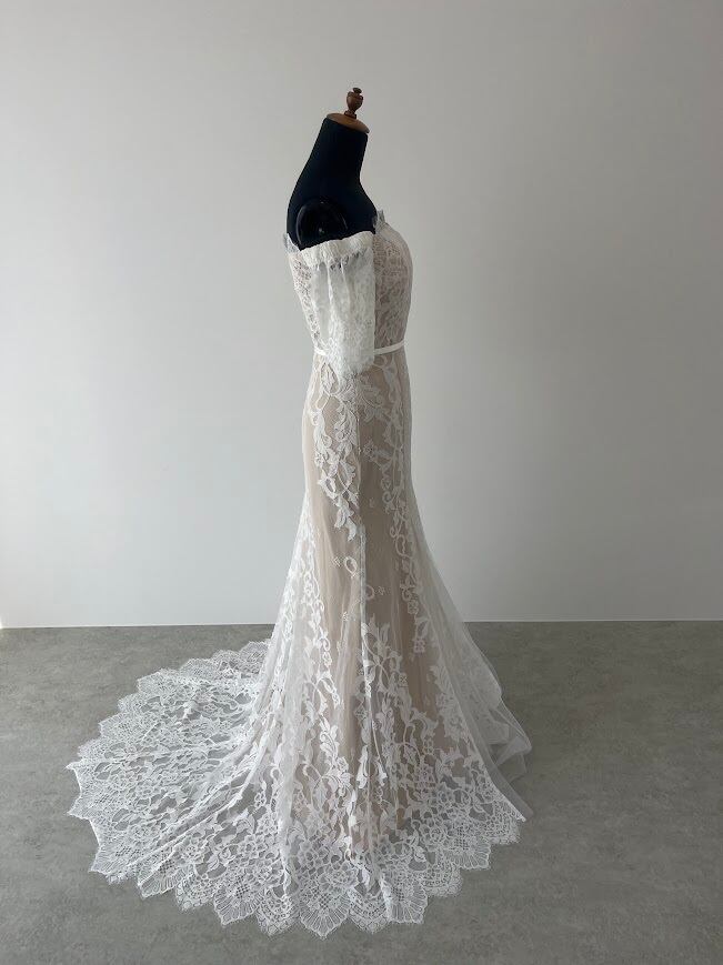 Sample Sale クラシカルレース オフショルダー ウエディングドレス(W19)【G004】