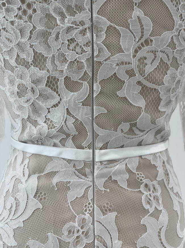 ベージュの裏地に、ホワイトのレースが重なった生地になっております。