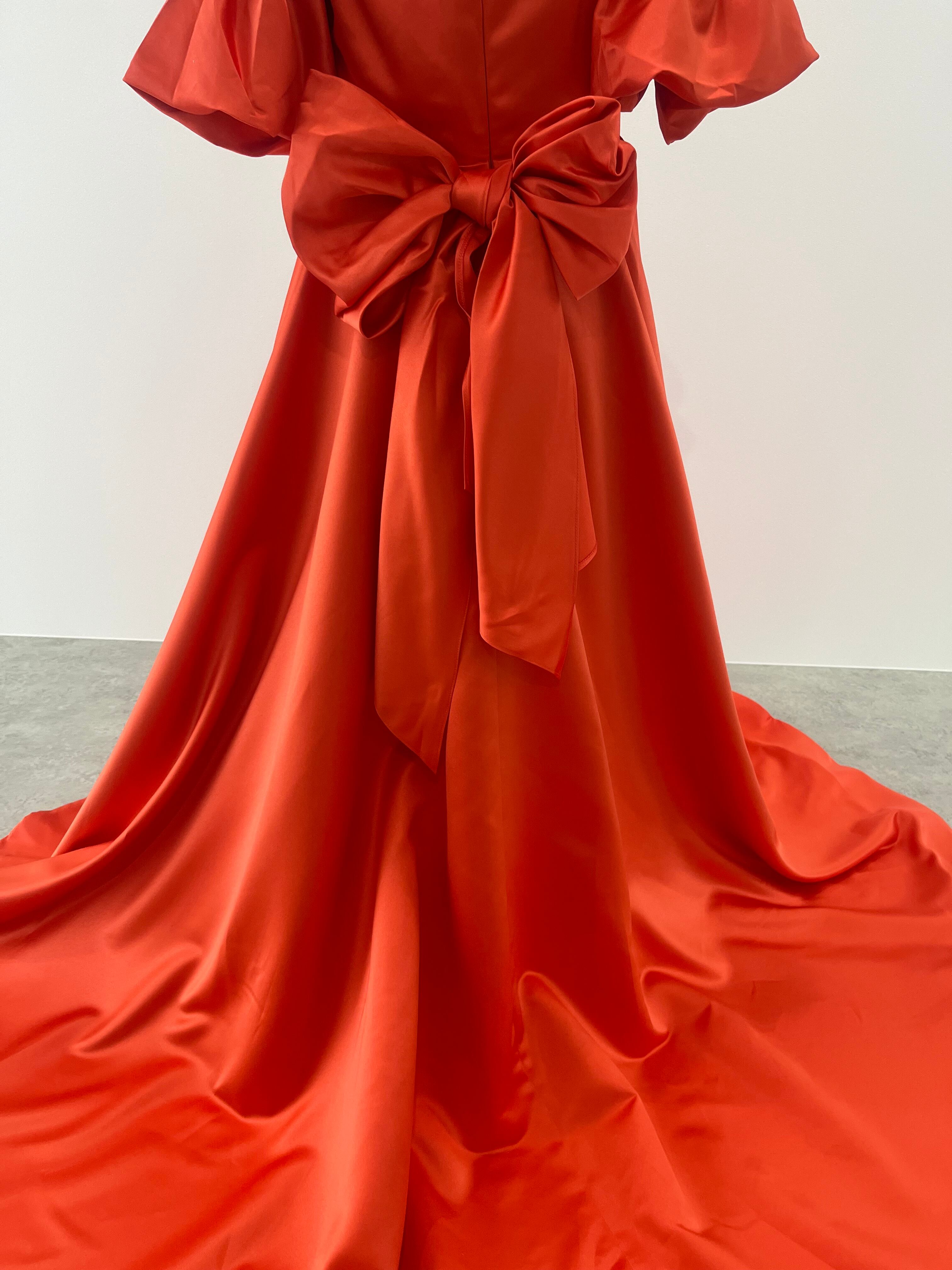 Sample Sale オフショルダー ボリューム袖 オレンジ サテンドレス【G001】