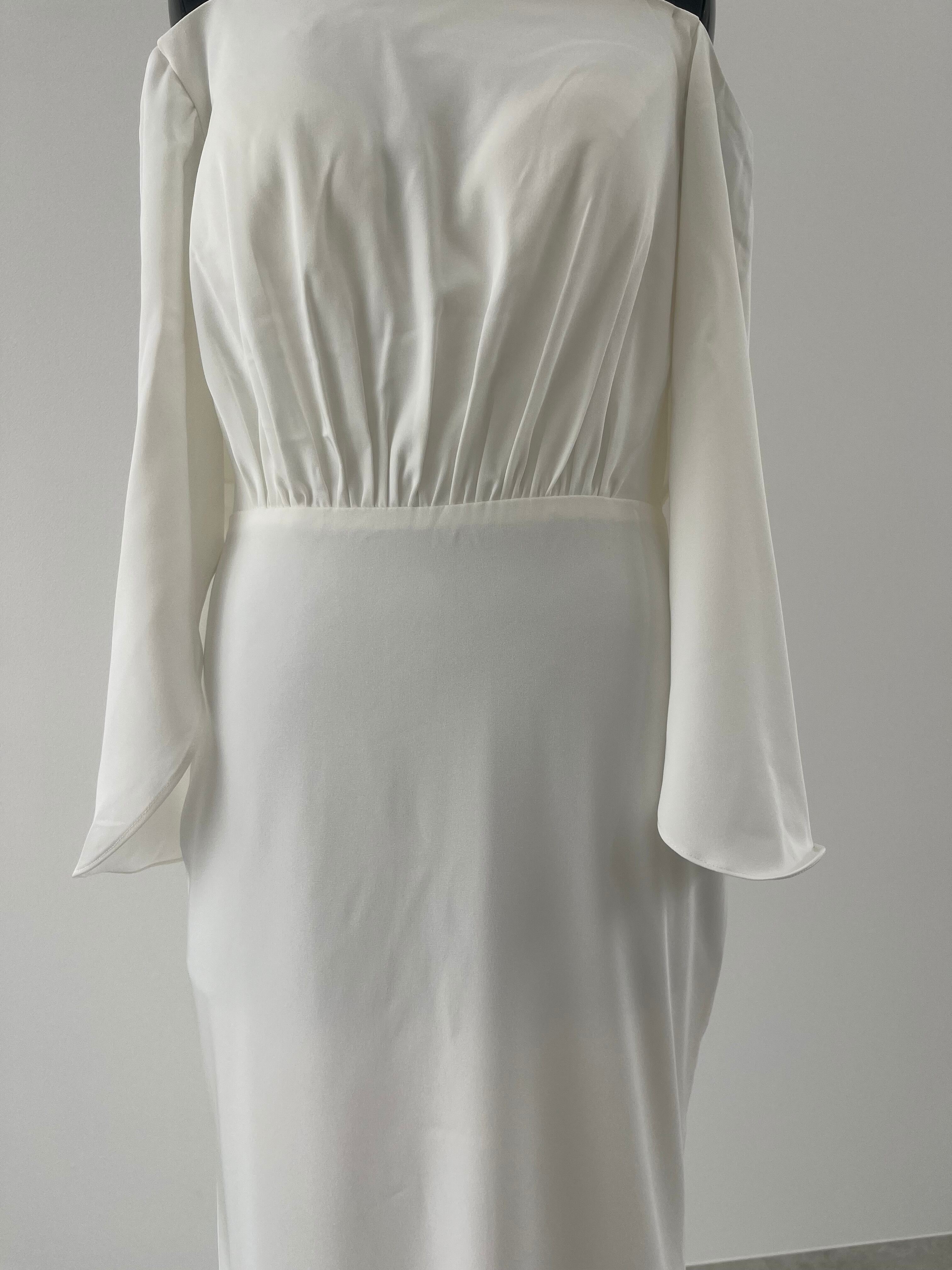 シンプルでエレガントなオフショルダードレスです。