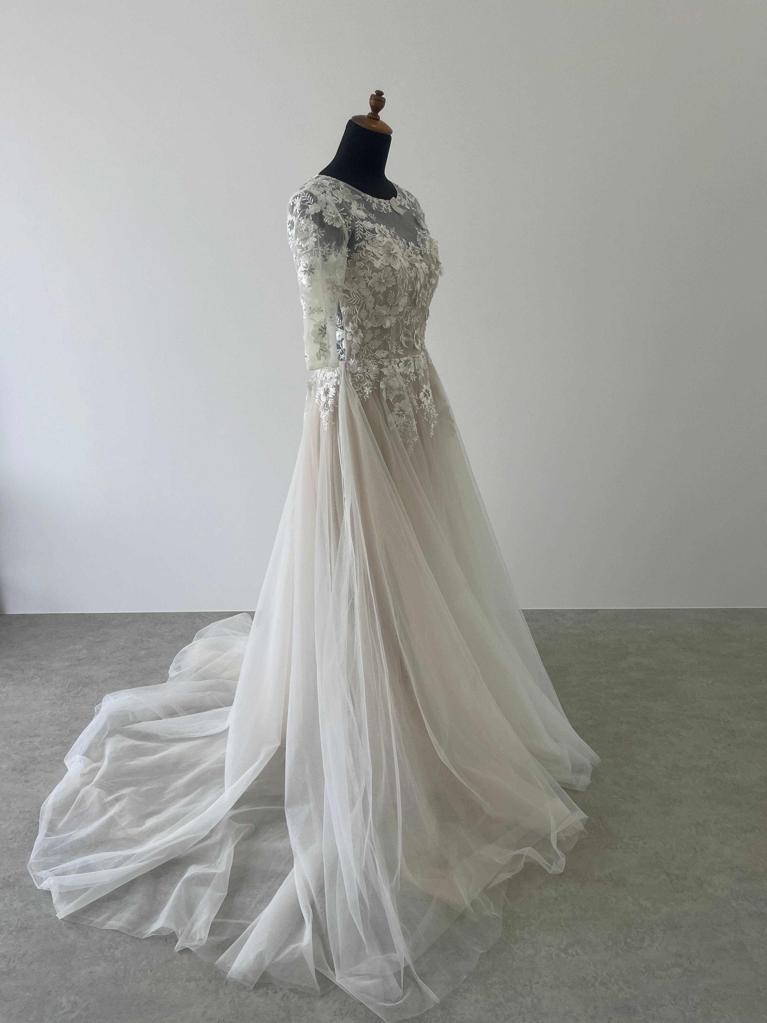Sample Sale 刺繍 フラワーモチーフ シャンパンカラー Aラインドレス(W127)【G015】