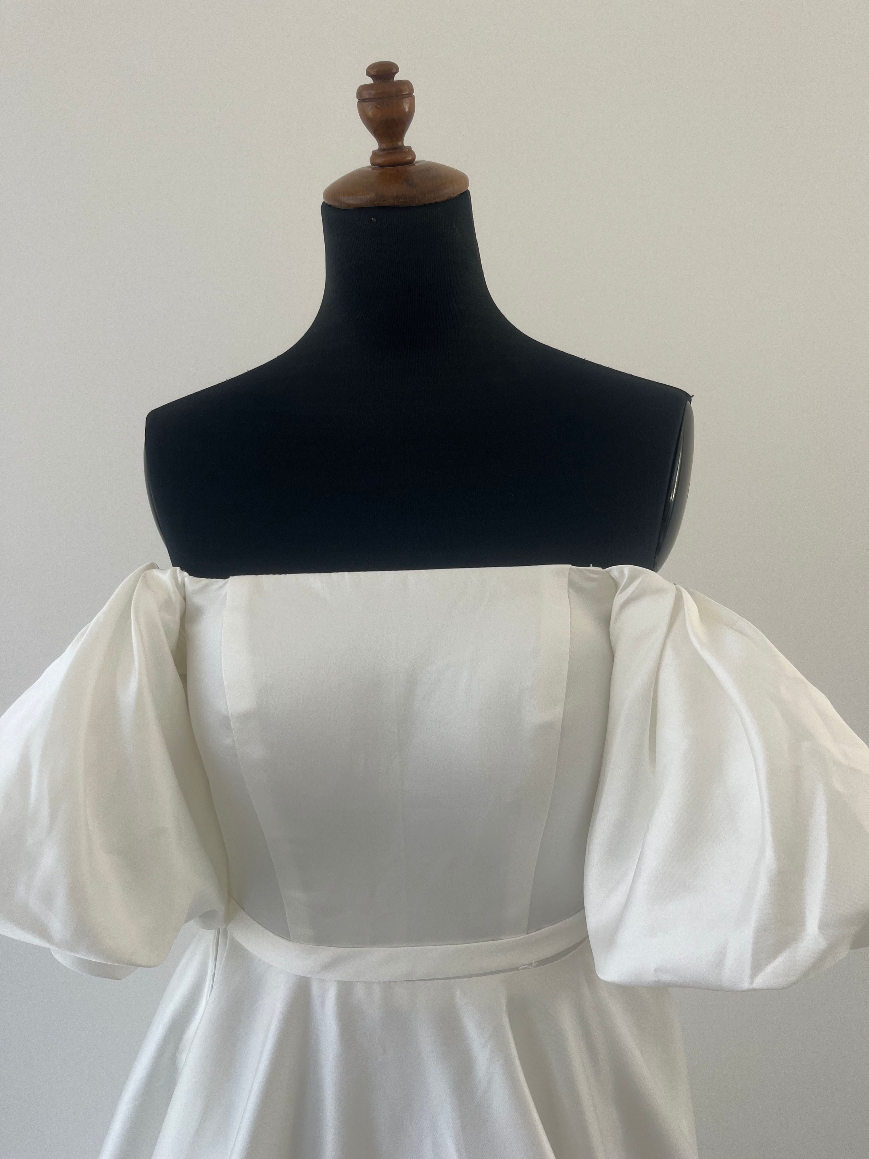Sample Sale オフショルダー ボリューム袖 サテンドレス(W220WH)【G017】