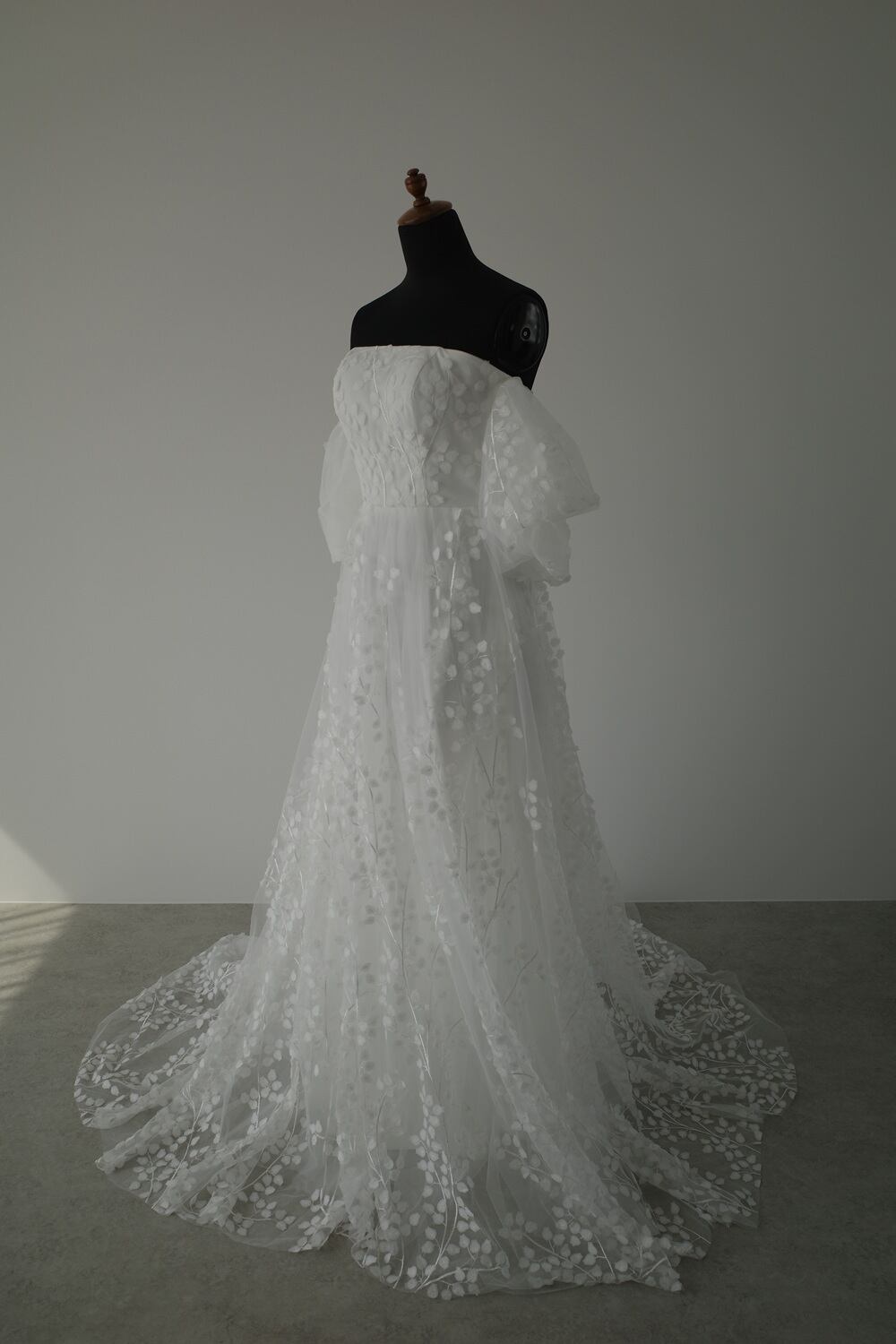 Sample Sale 2way すずらんレース パフスリーブ ソフトマーメイドドレス(W285)【G023】