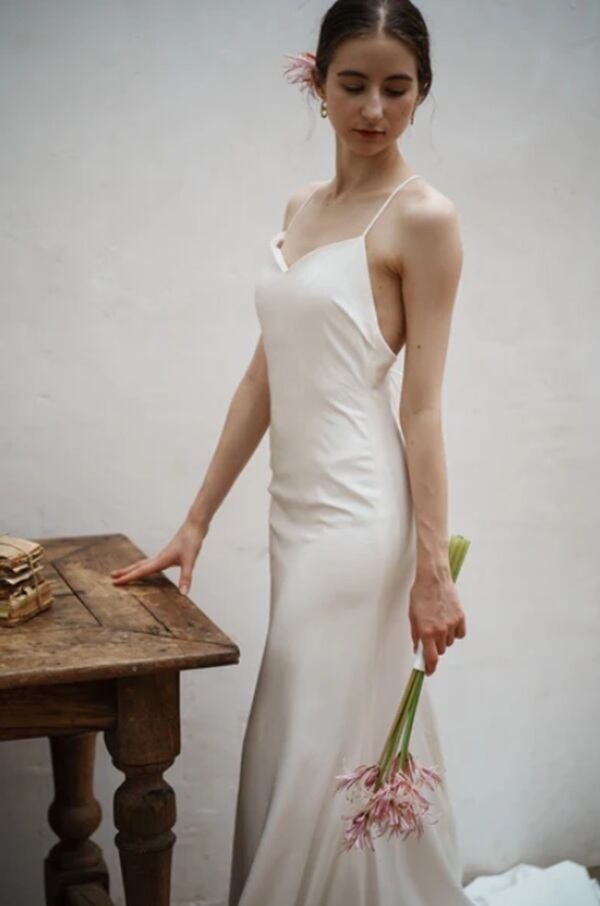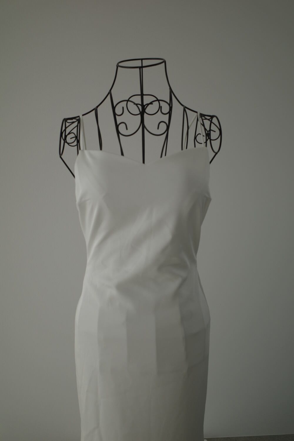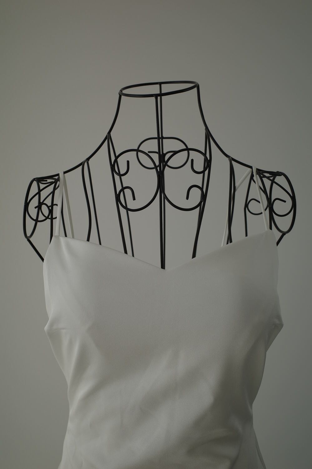 シンプルなスパゲッティストラップのキャミソールドレス。