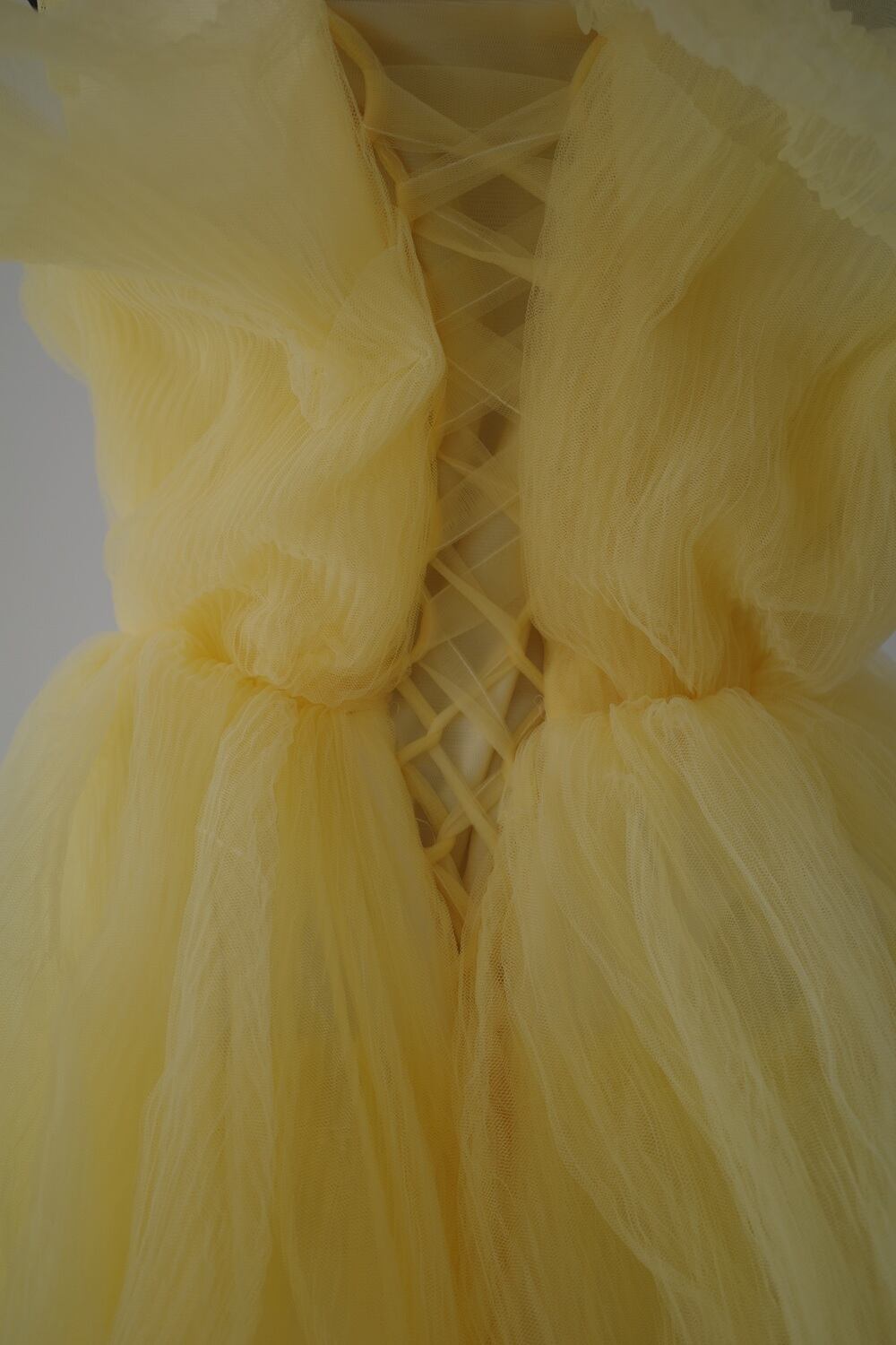背中は紐で編み上げる仕様となっており、サイズ調整が可能です。