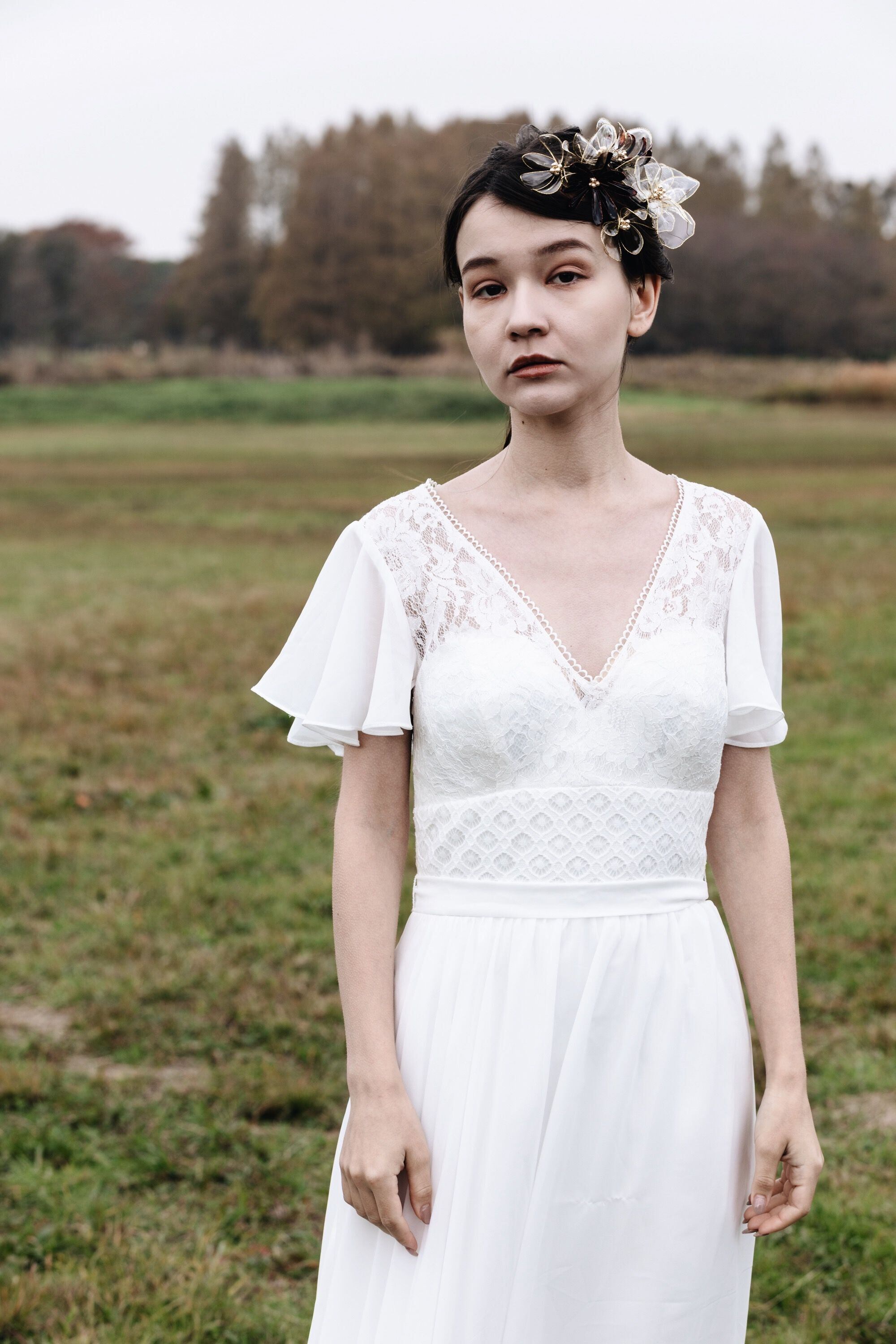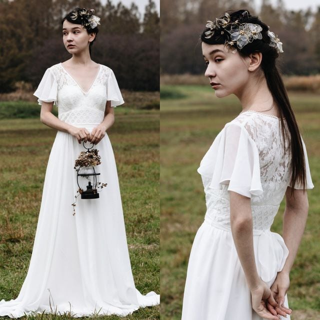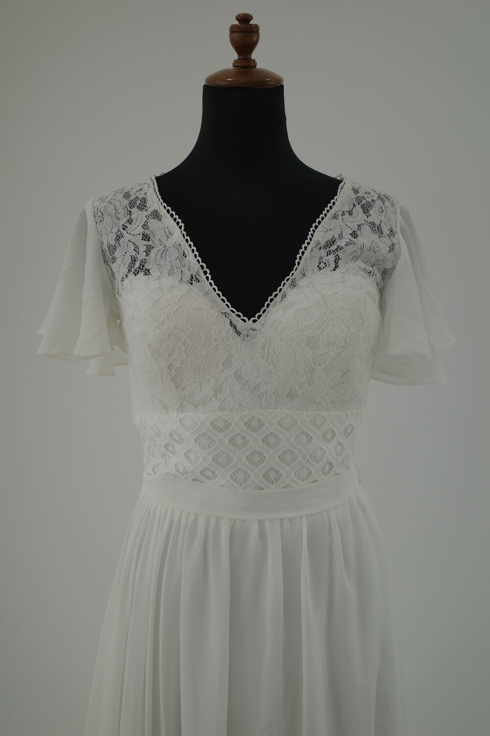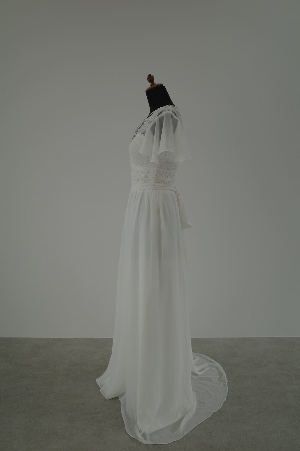 Sample Sale レース フレア袖 シフォンドレス(W180)【G042】