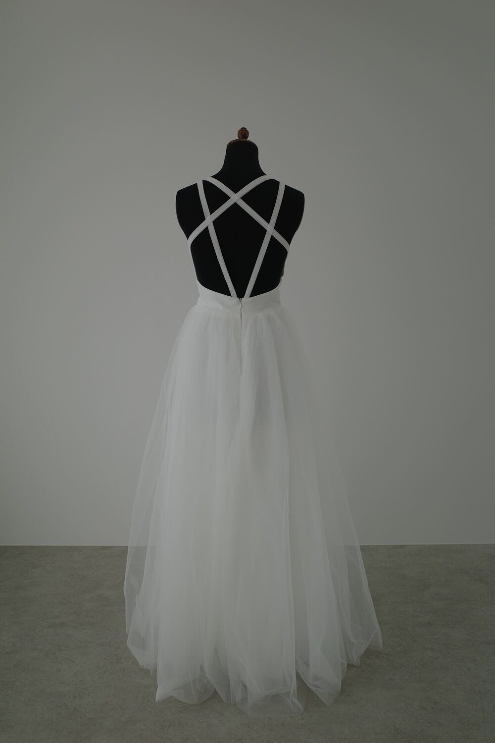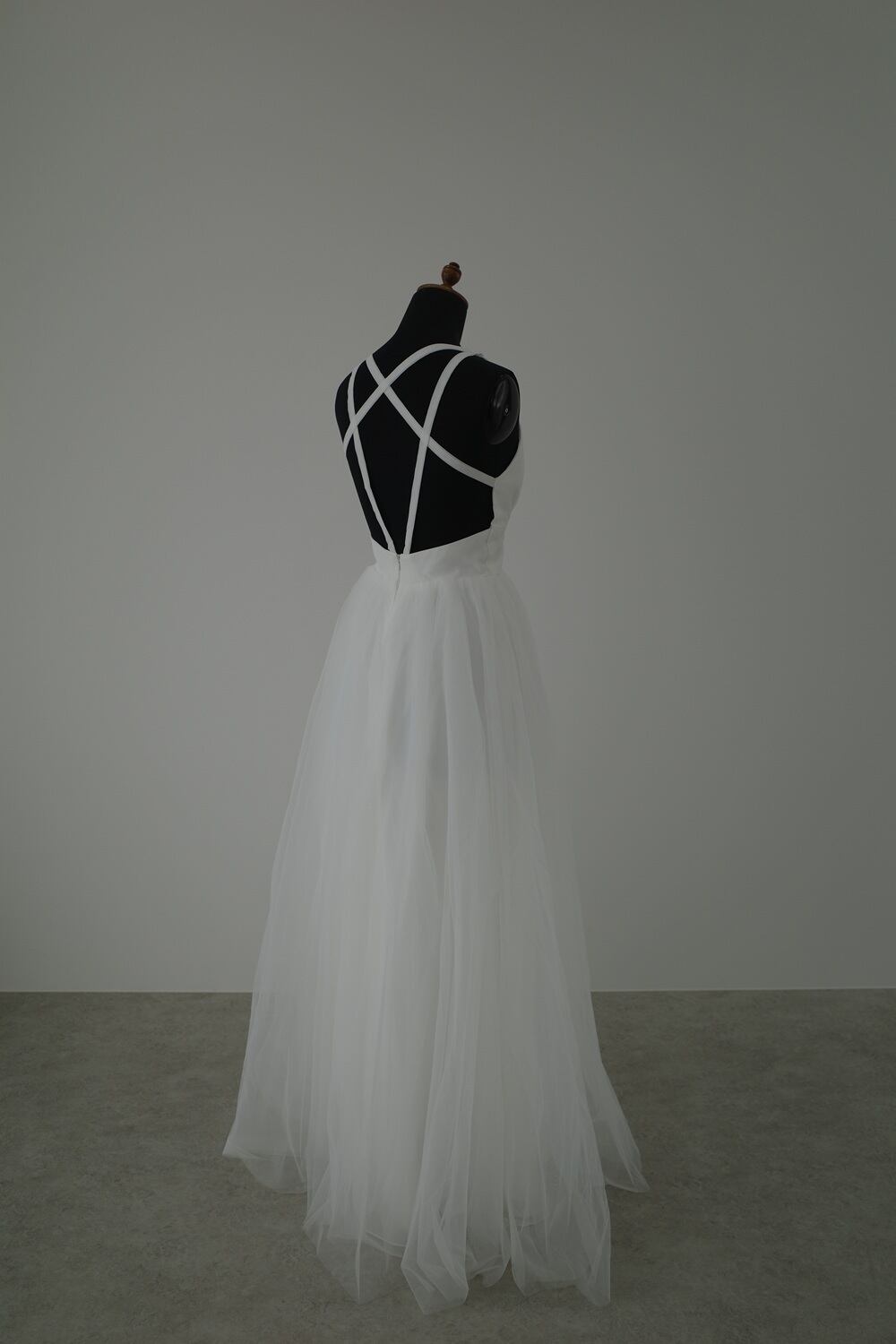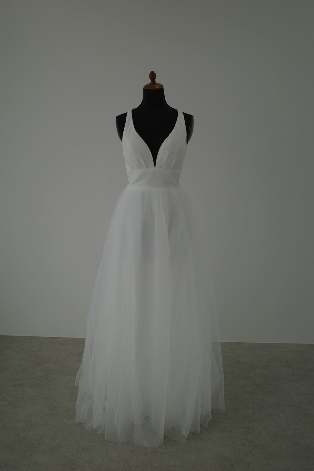 Sample Sale バッククロス Vネック チュール ウエディングドレス(W81)【G043】