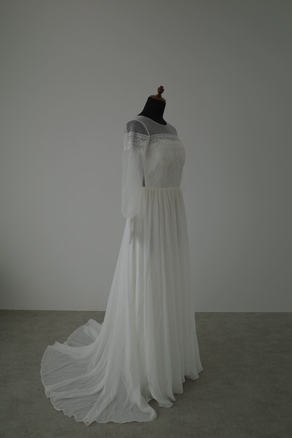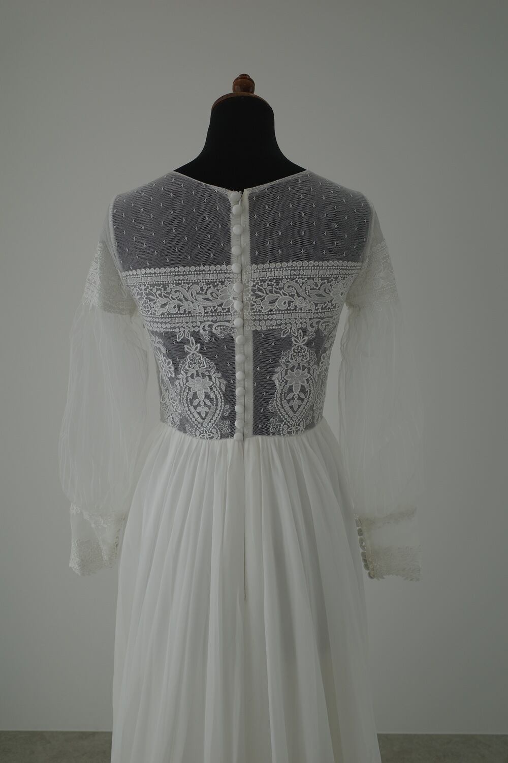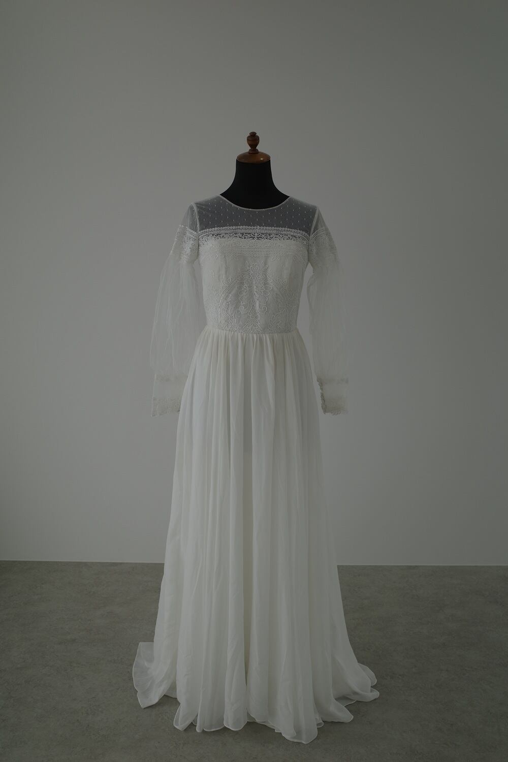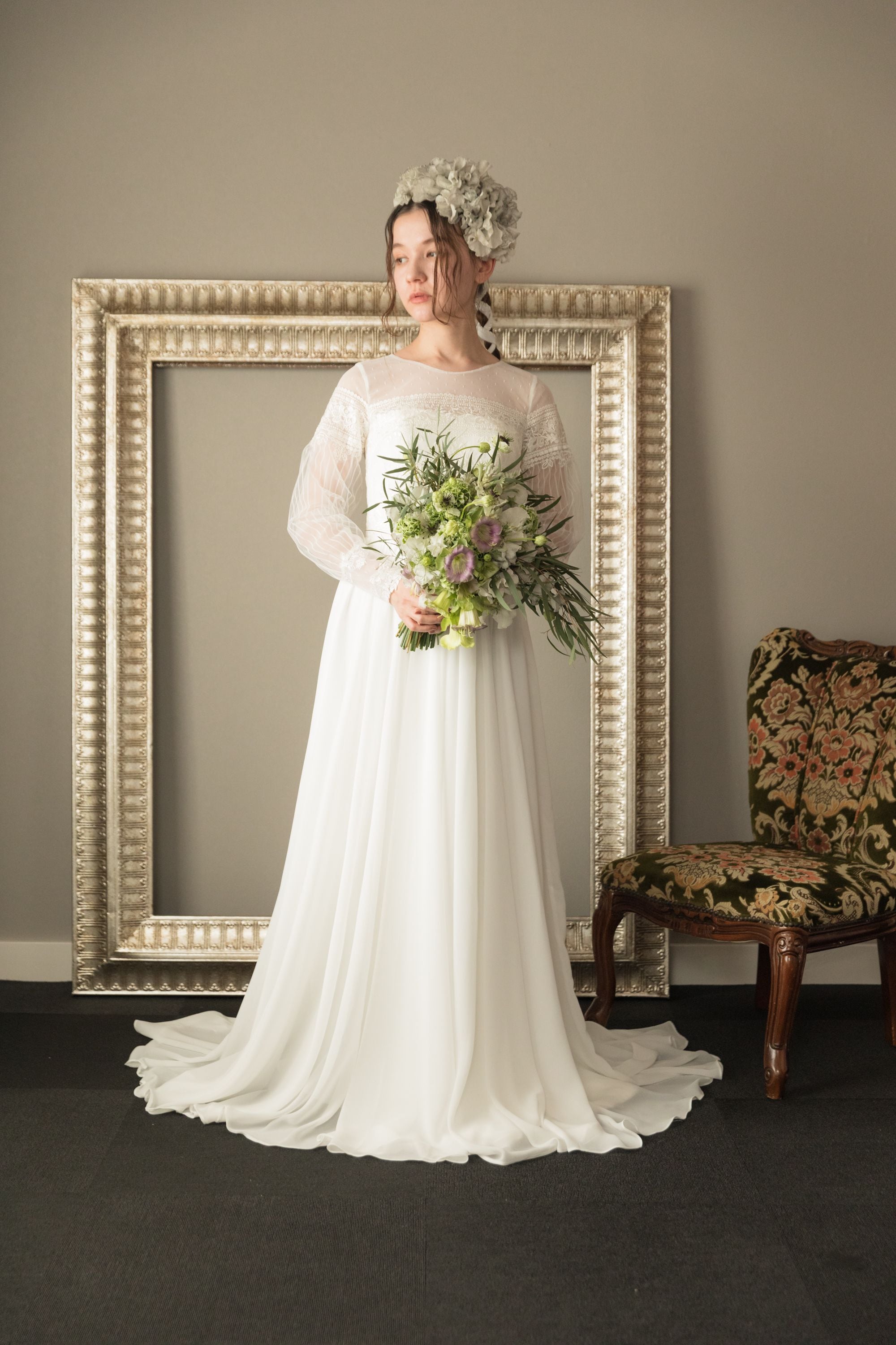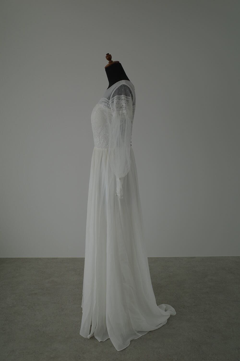 Sample Sale レース 刺繍 ボリューム袖 シフォン ドレス(W92)【G044】