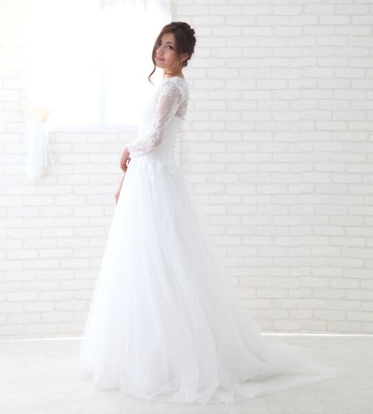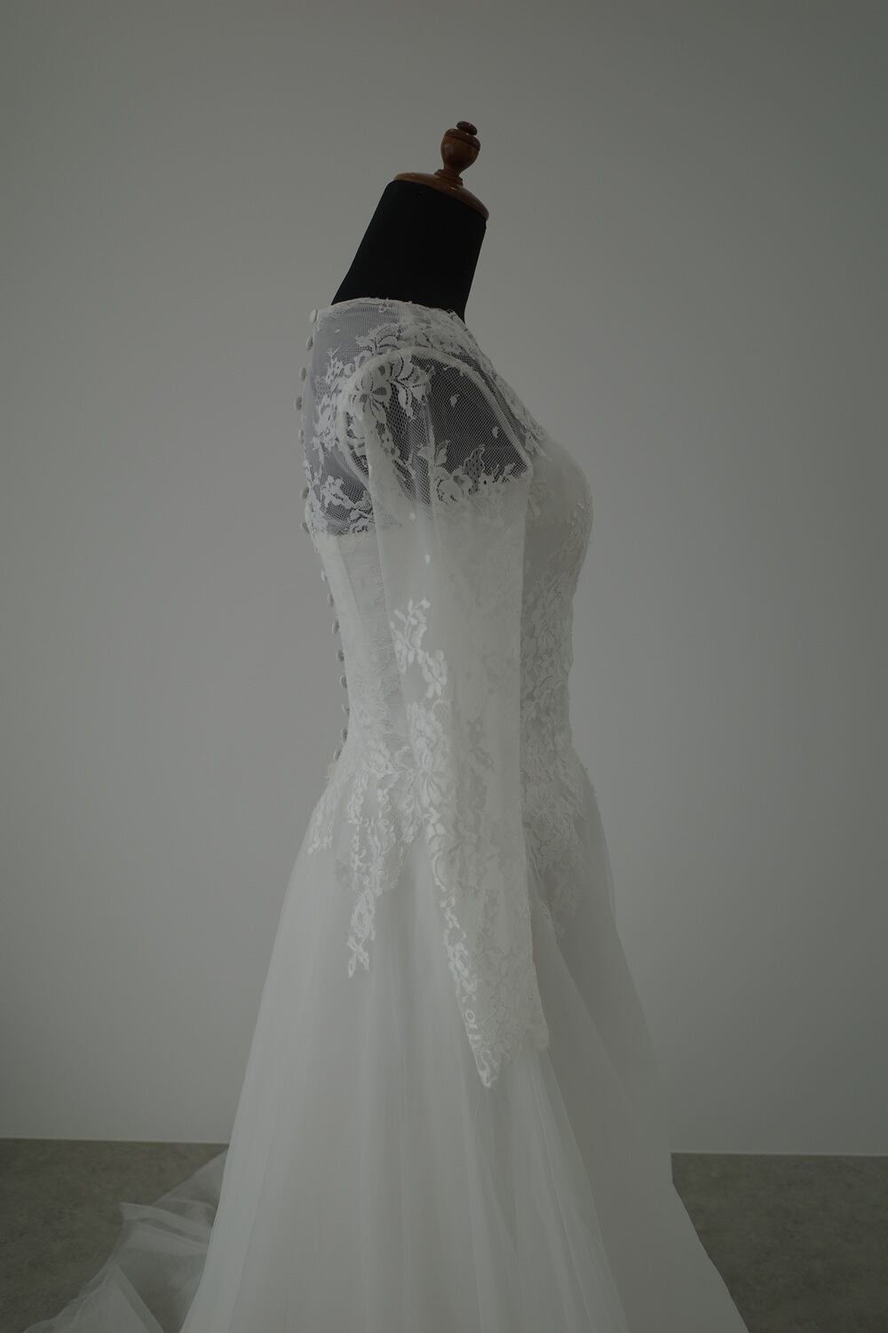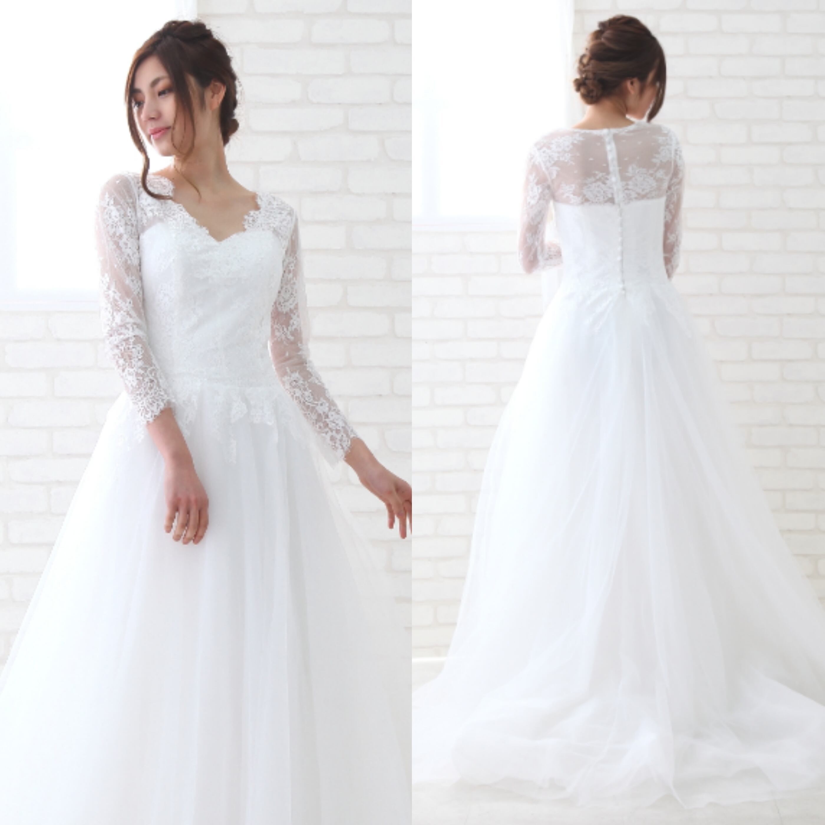 Sample Sale レース 長袖 Aラインドレス(W130) 【G046】