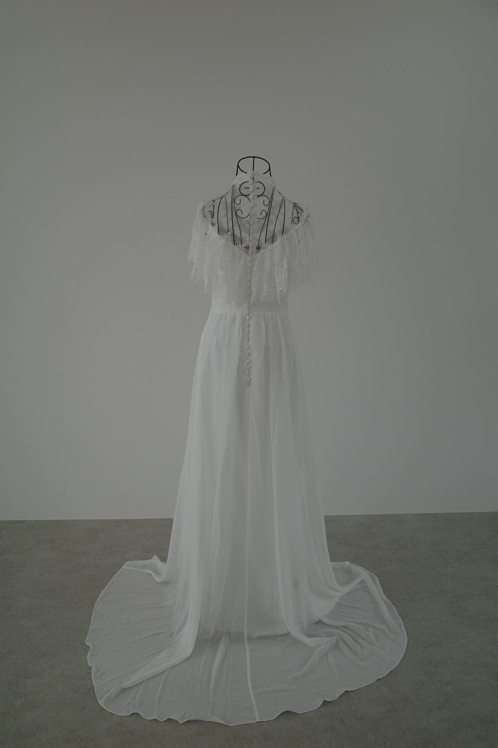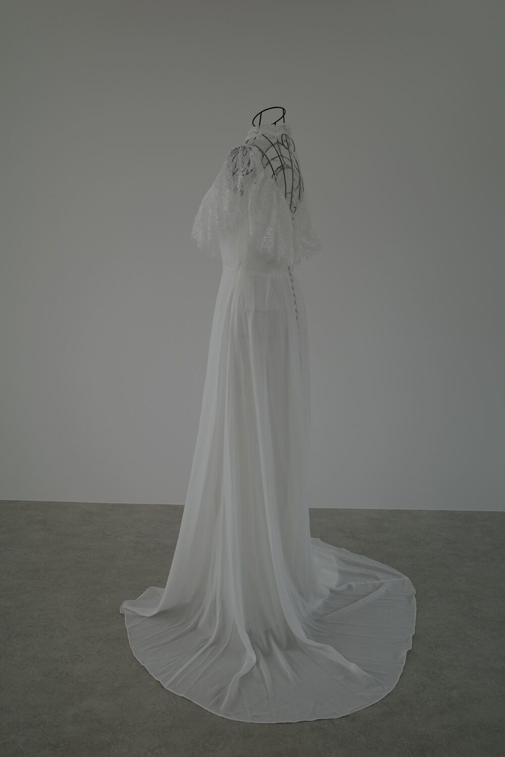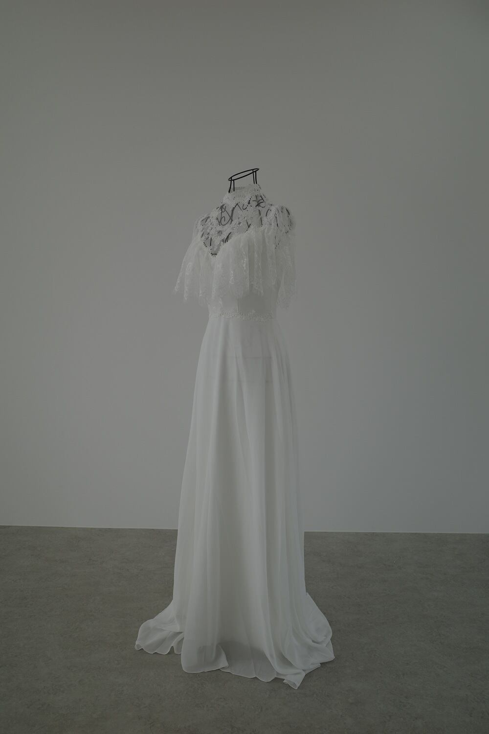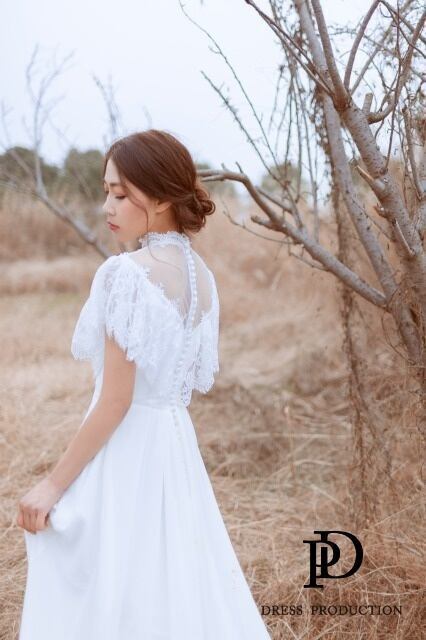 Sample Sale フリルショルダー ハイネック ウエディングドレス(W25)【G055】
