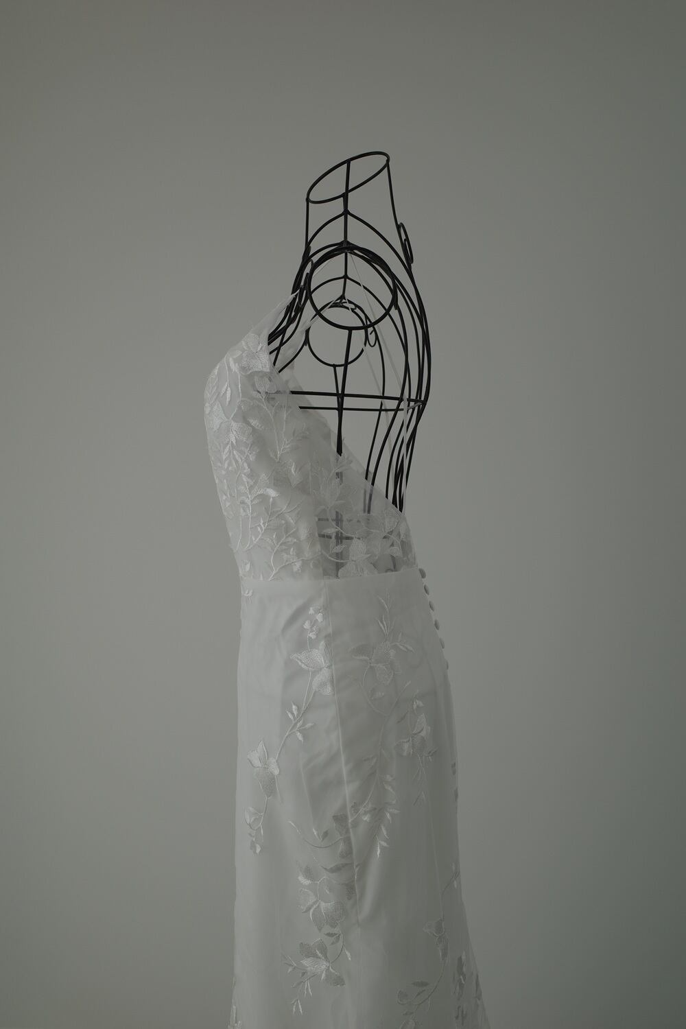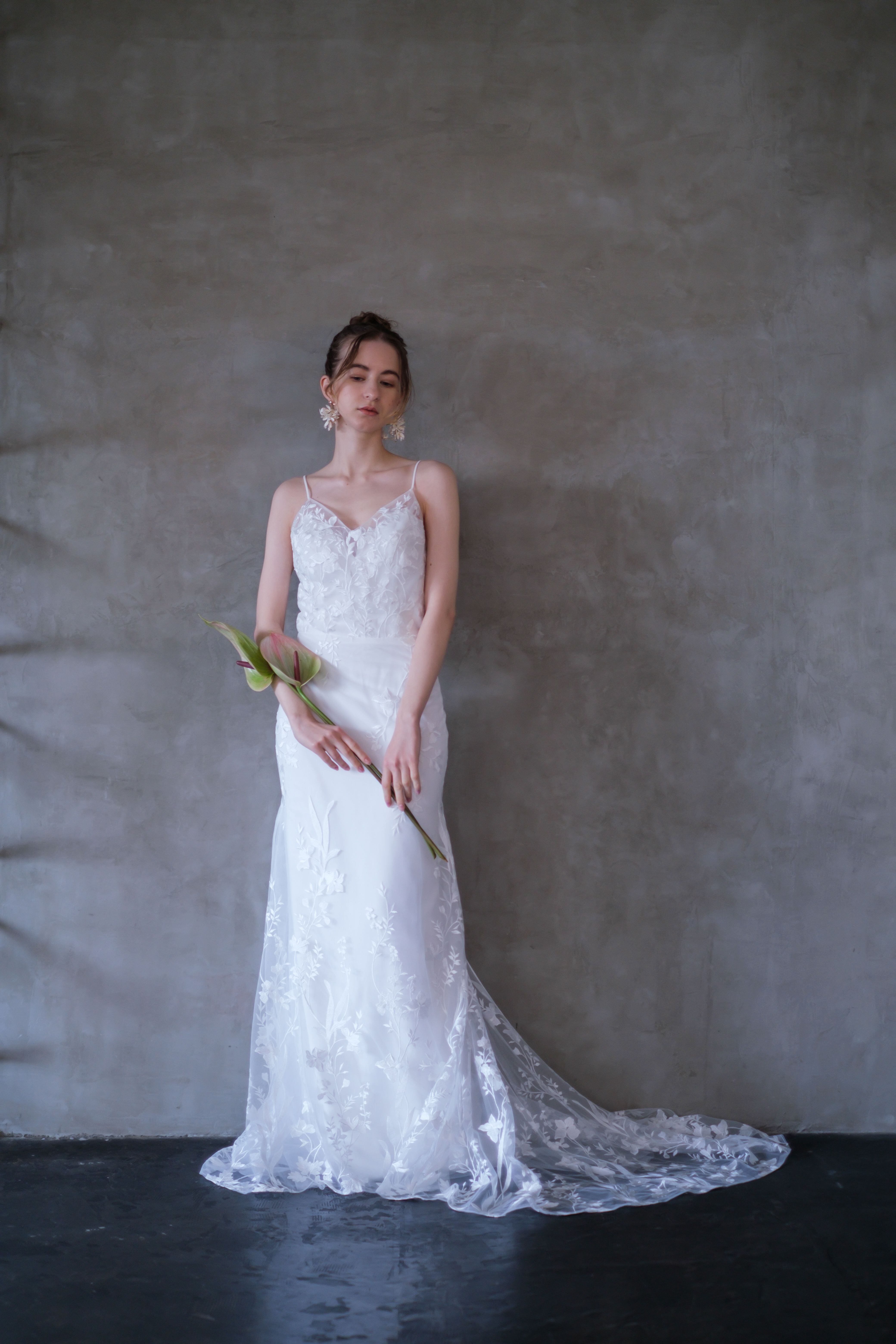 上品で存在感のある刺繍レースを使用したキャミソールドレス。