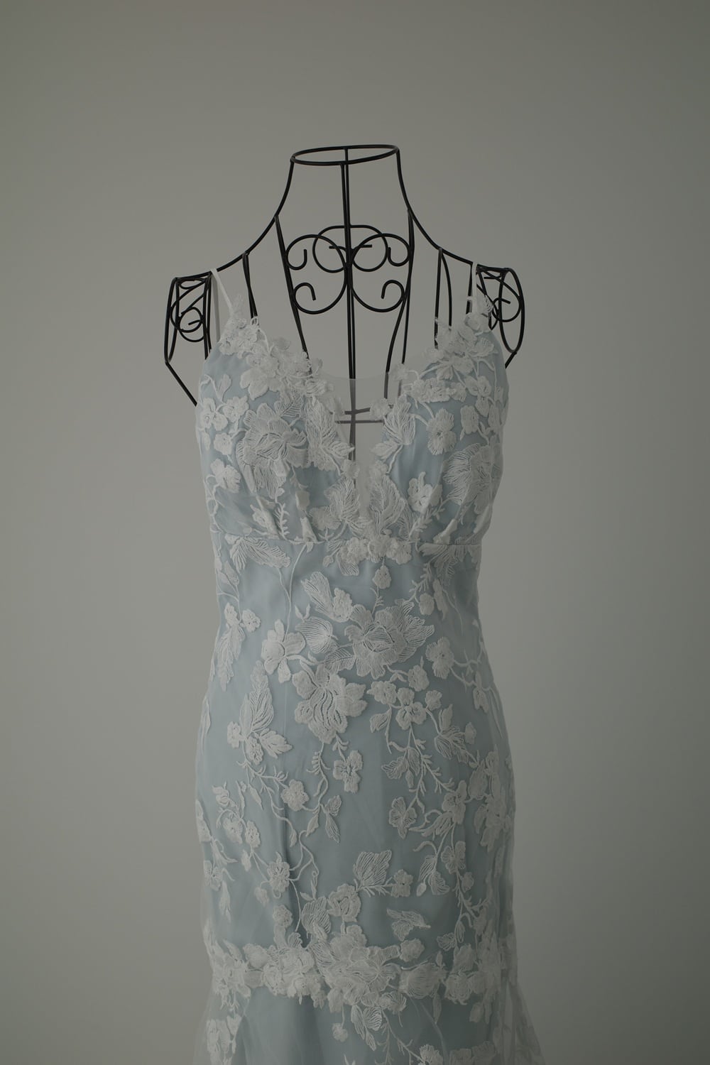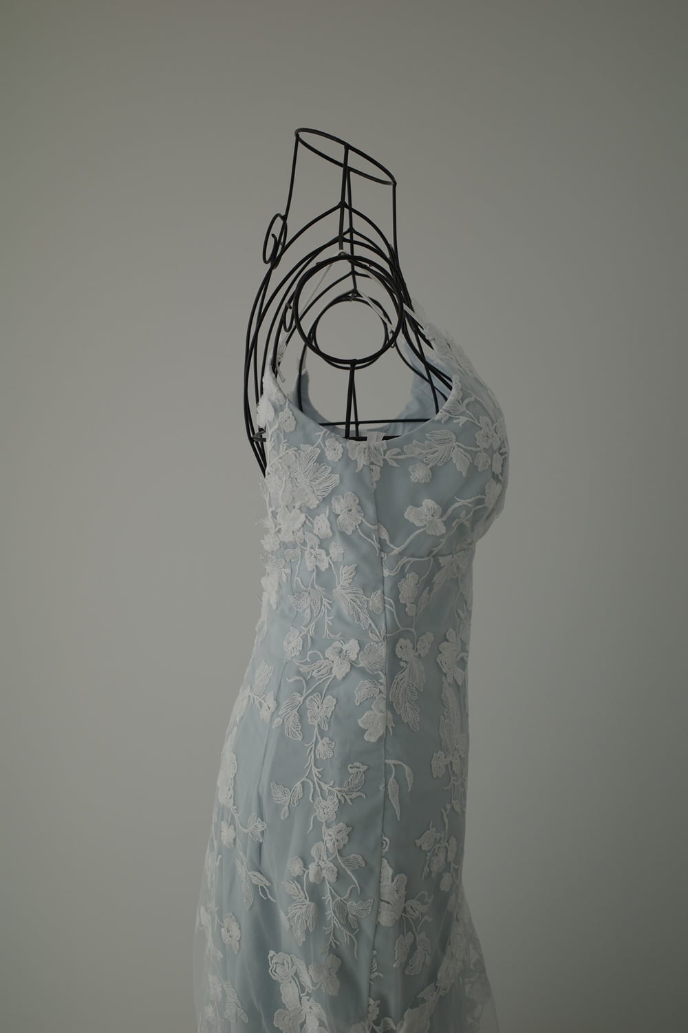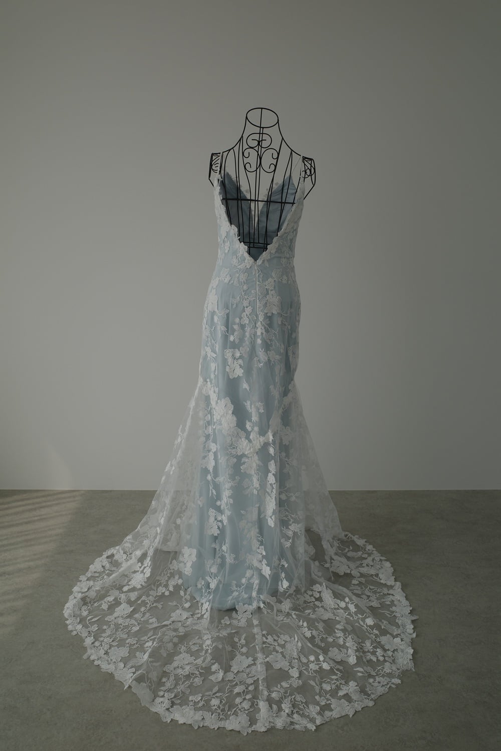 Sample Sale 刺繍レース 背中開き ソフトマーメイドドレス(W230) 【G060】