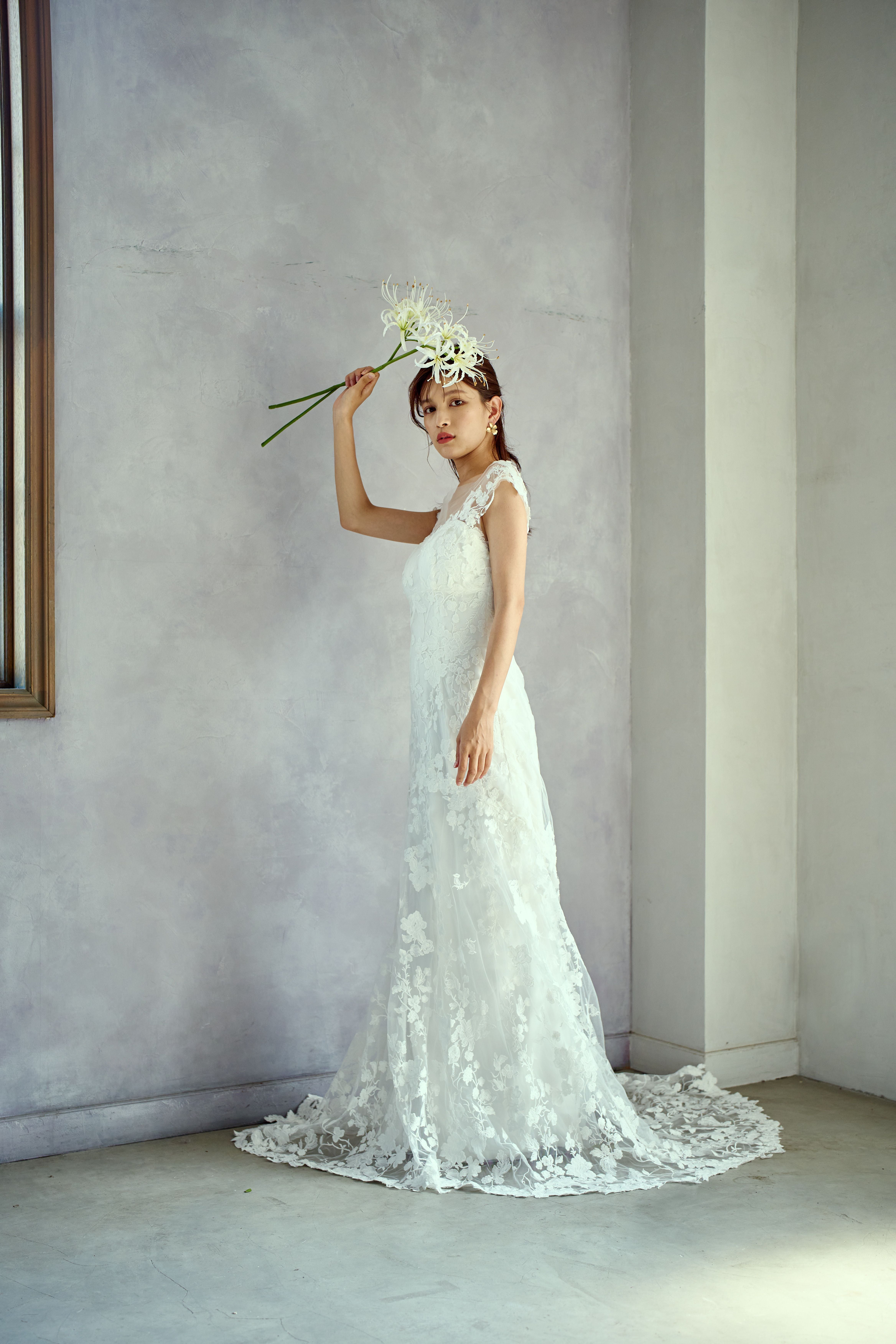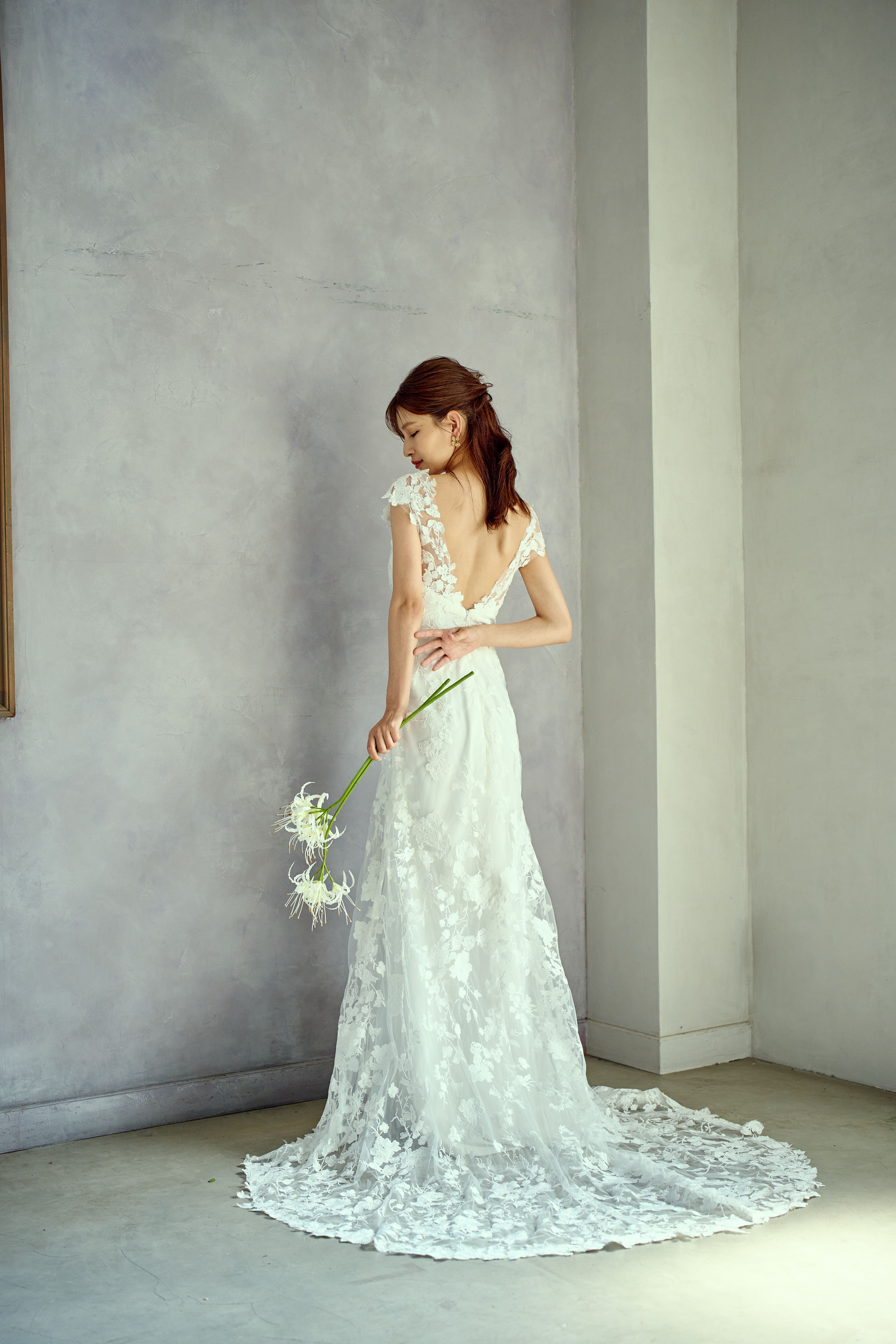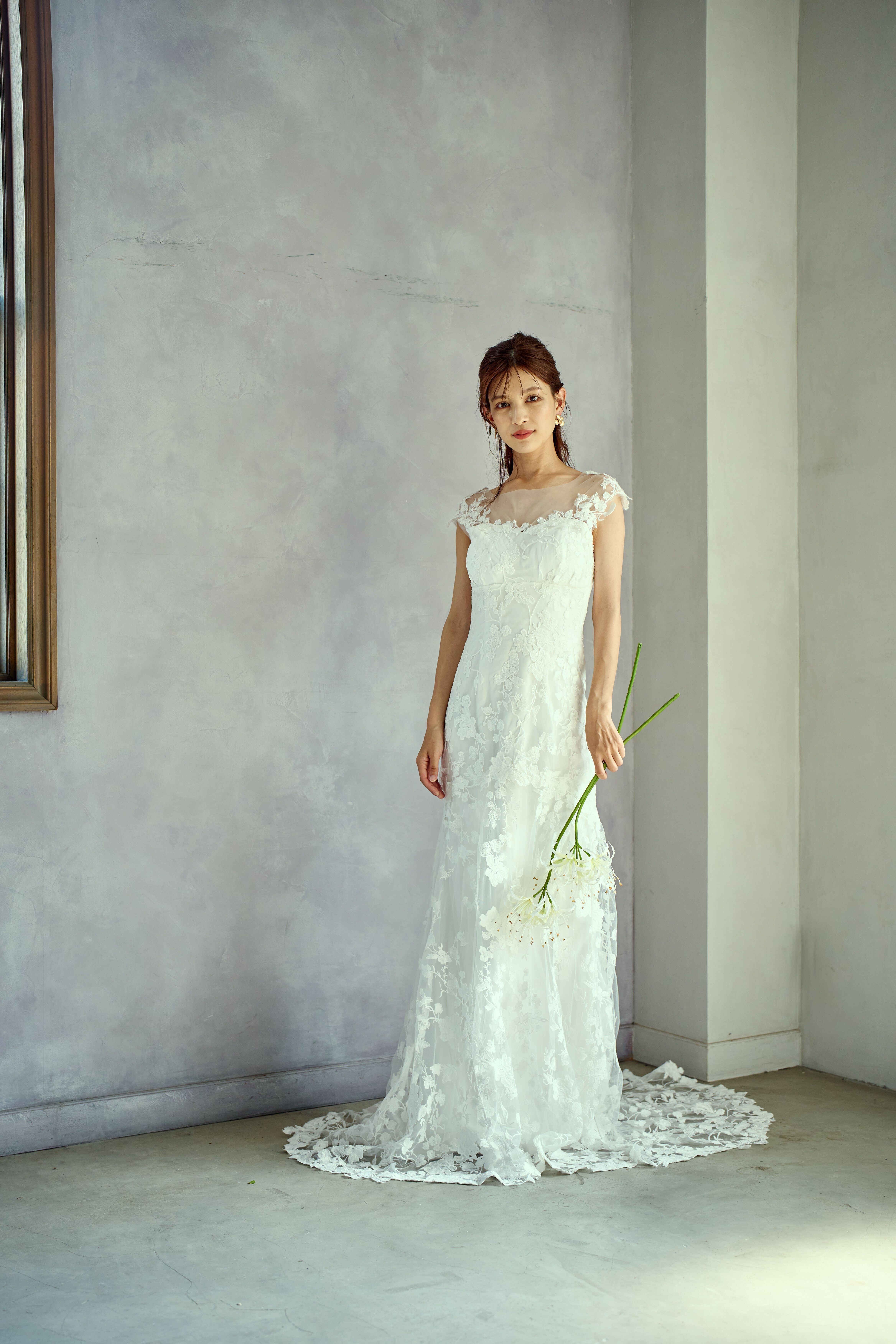 Sample Sale 刺繍レース フレンチスリーブ マーメイドドレス(W284)【G064】