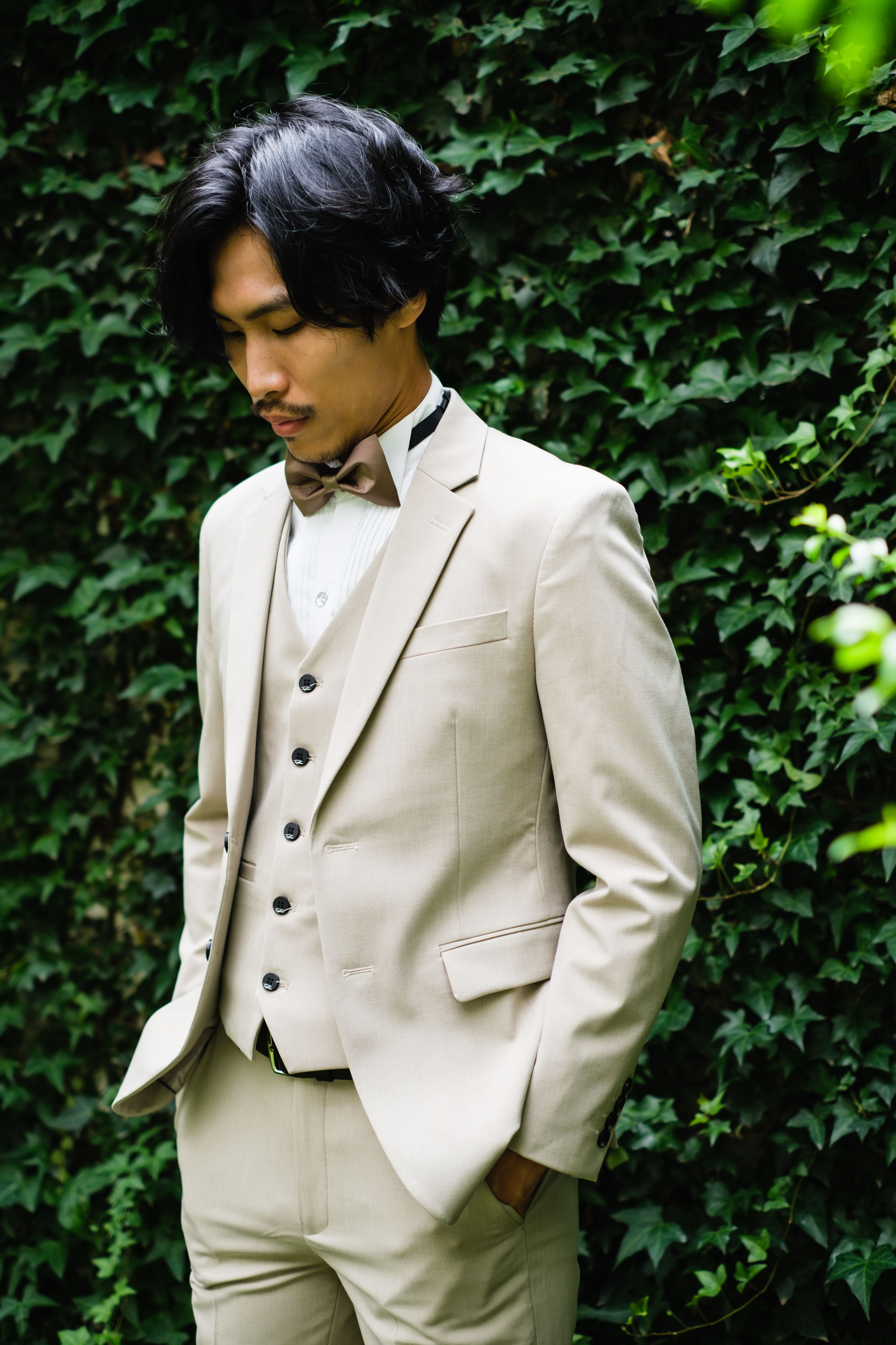 Sample Saleスリーピース メンズスーツ タキシード ライトベージュ (M01)【G067】