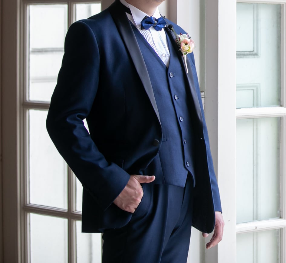 Sample Sale ネイビー スリーピース メンズスーツ タキシード(M06)【G073】