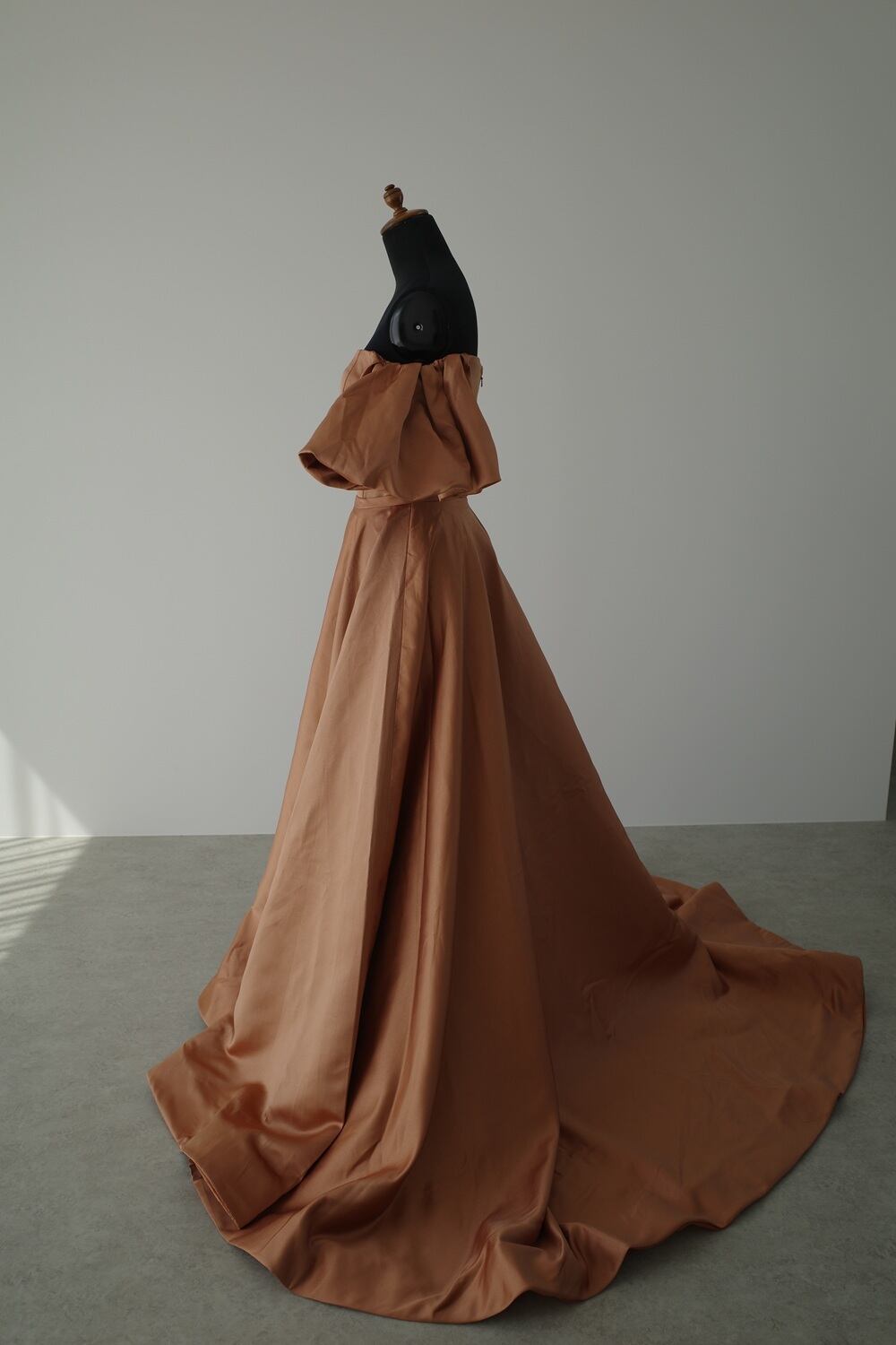 明るいブラウン味のあるテラコッタカラーのドレスです。