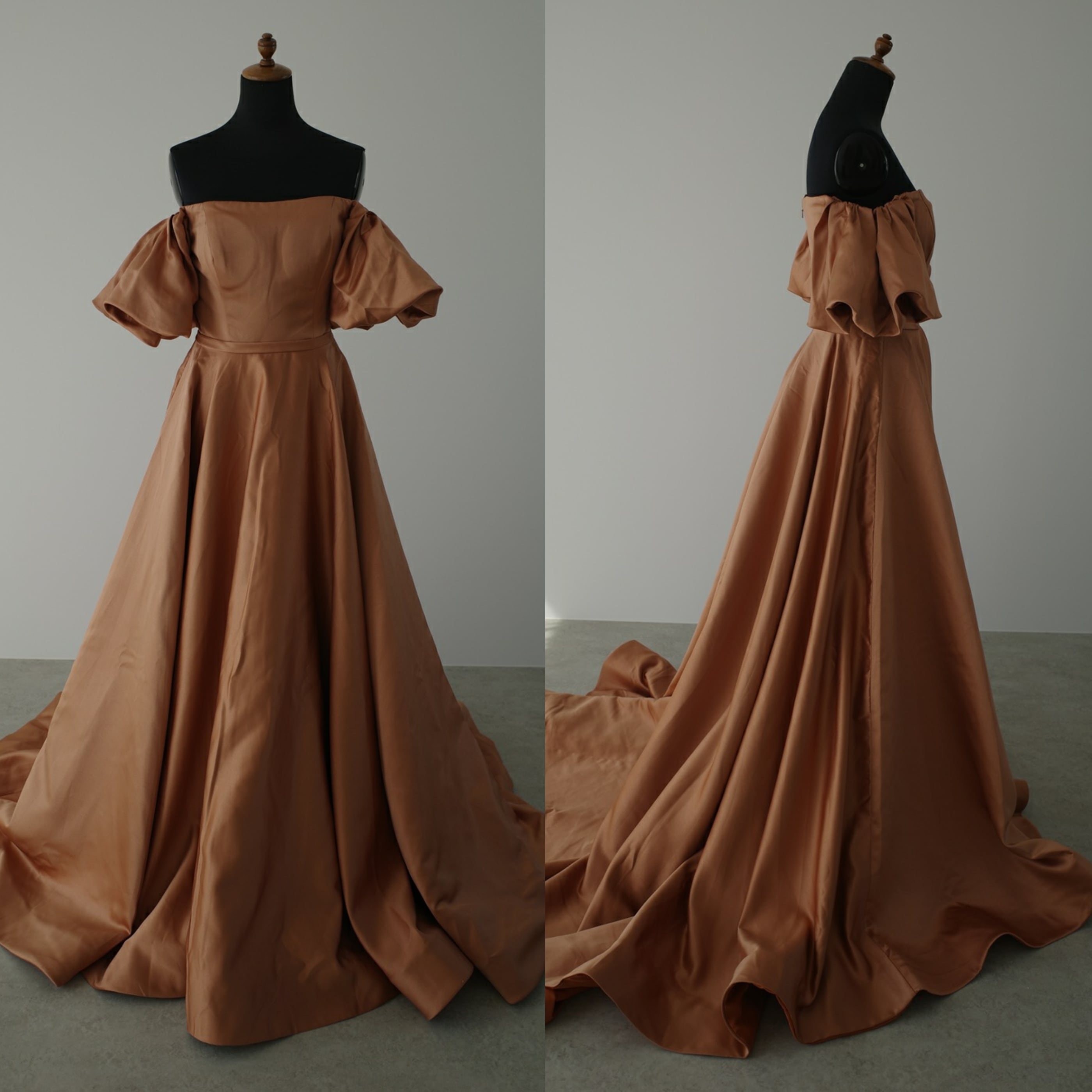 Sample Sale オフショルダー ボリューム袖 サテンドレス(W220BR)【G093】