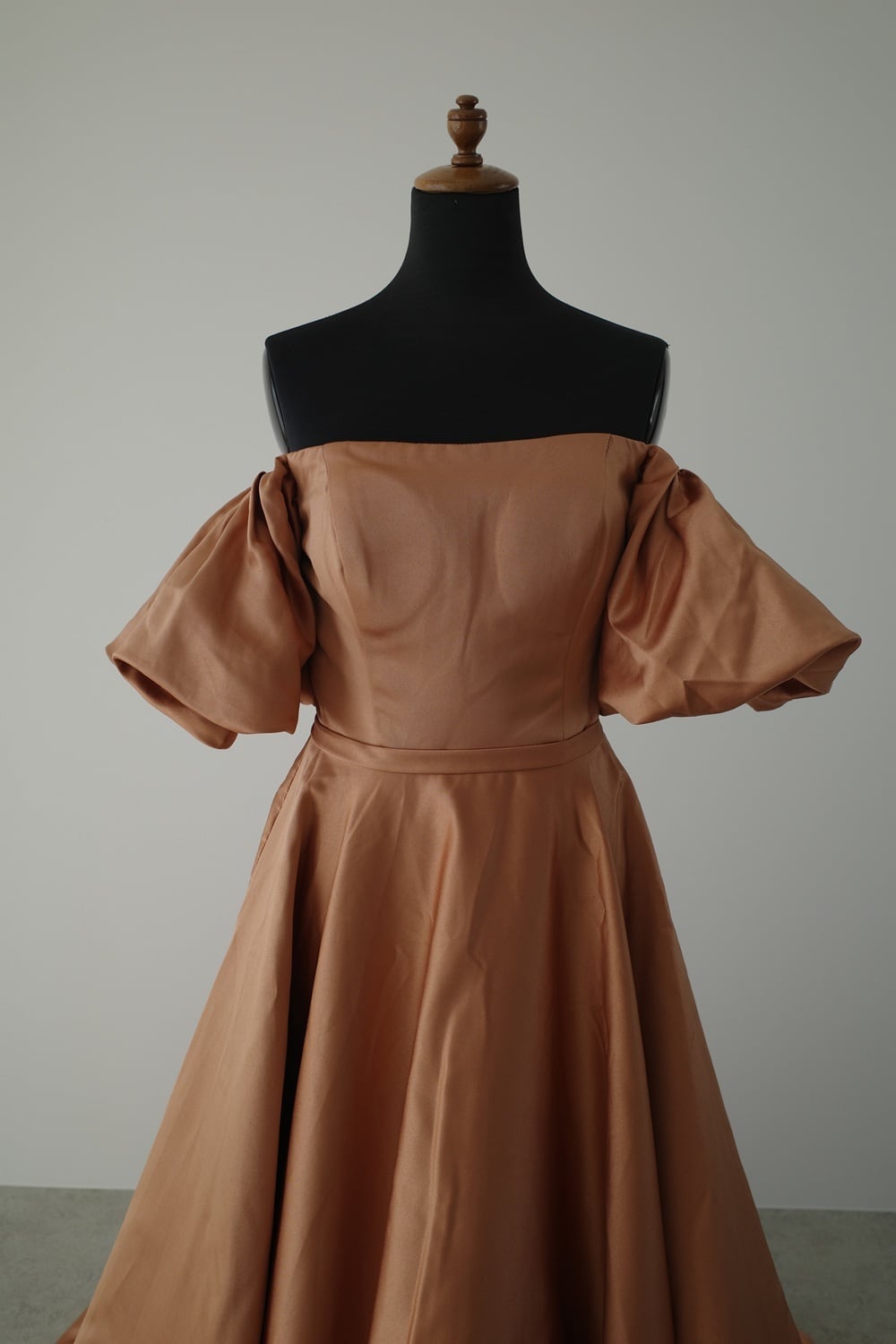 Sample Sale オフショルダー ボリューム袖 サテンドレス(W220BR)【G094】