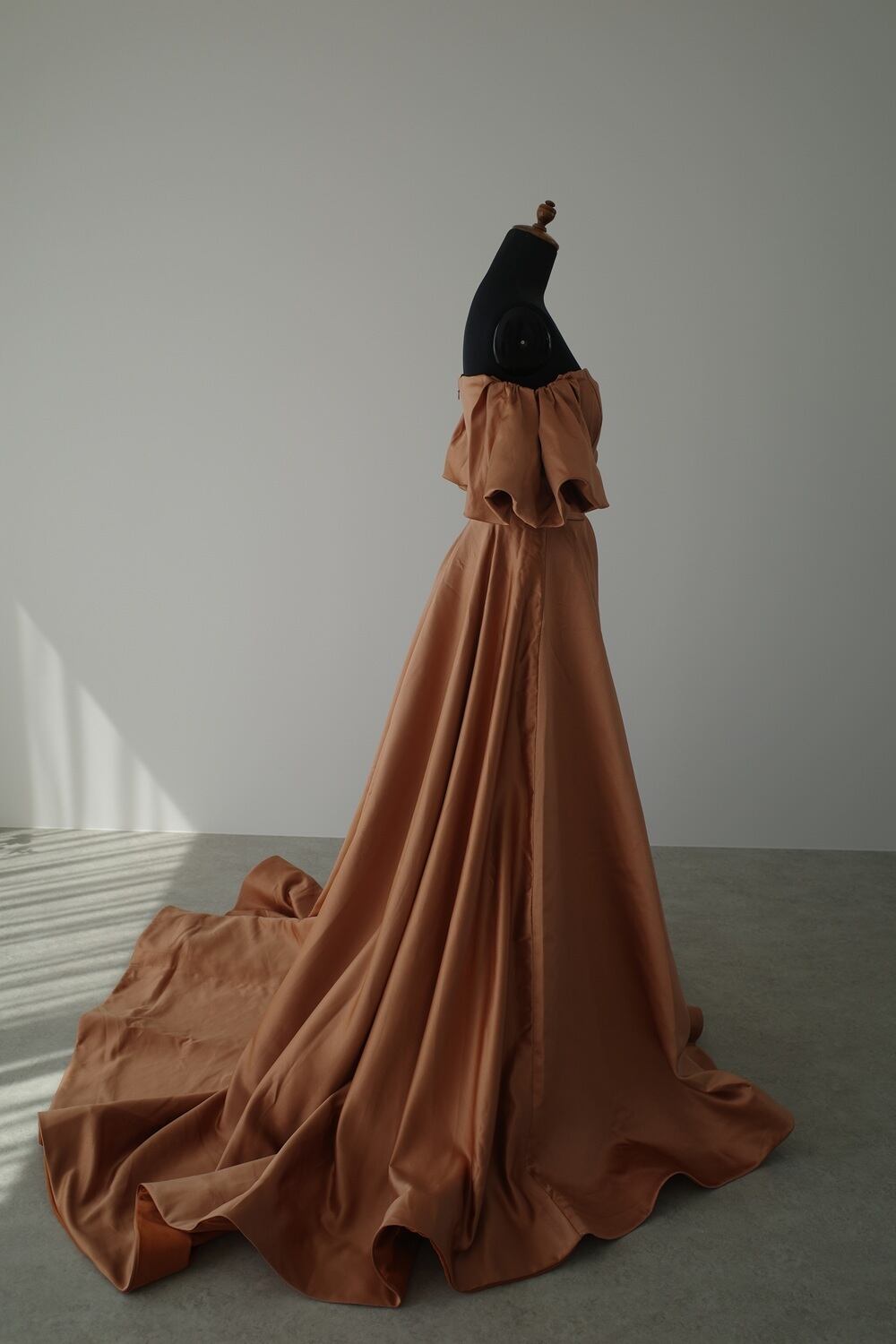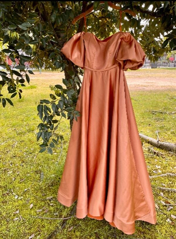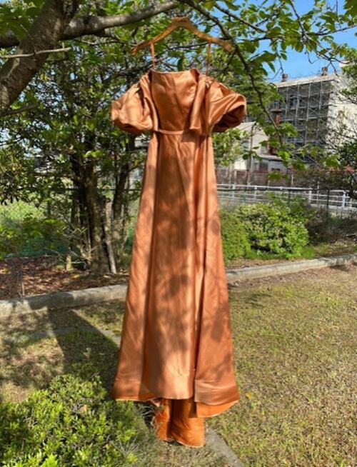 明るいブラウン味のあるテラコッタカラーのドレスです。