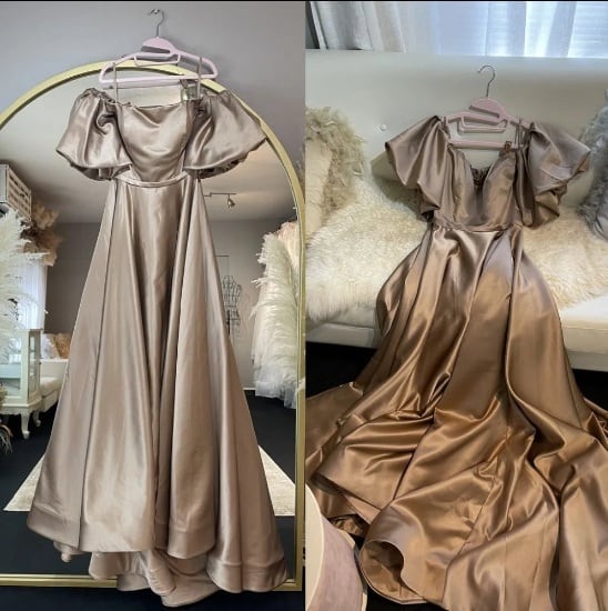 Sample Sale オフショルダー ボリューム袖 サテンドレス(W220GB)【G116】