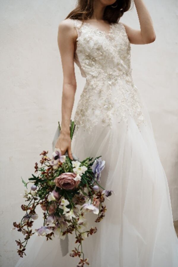 Sample Sale ビーズ刺繍 Vネック チュールドレス(W267) 【G121】