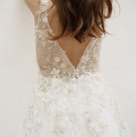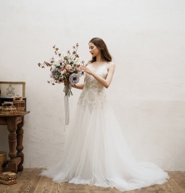 ビーズ刺繡が目を惹くチュールドレス。