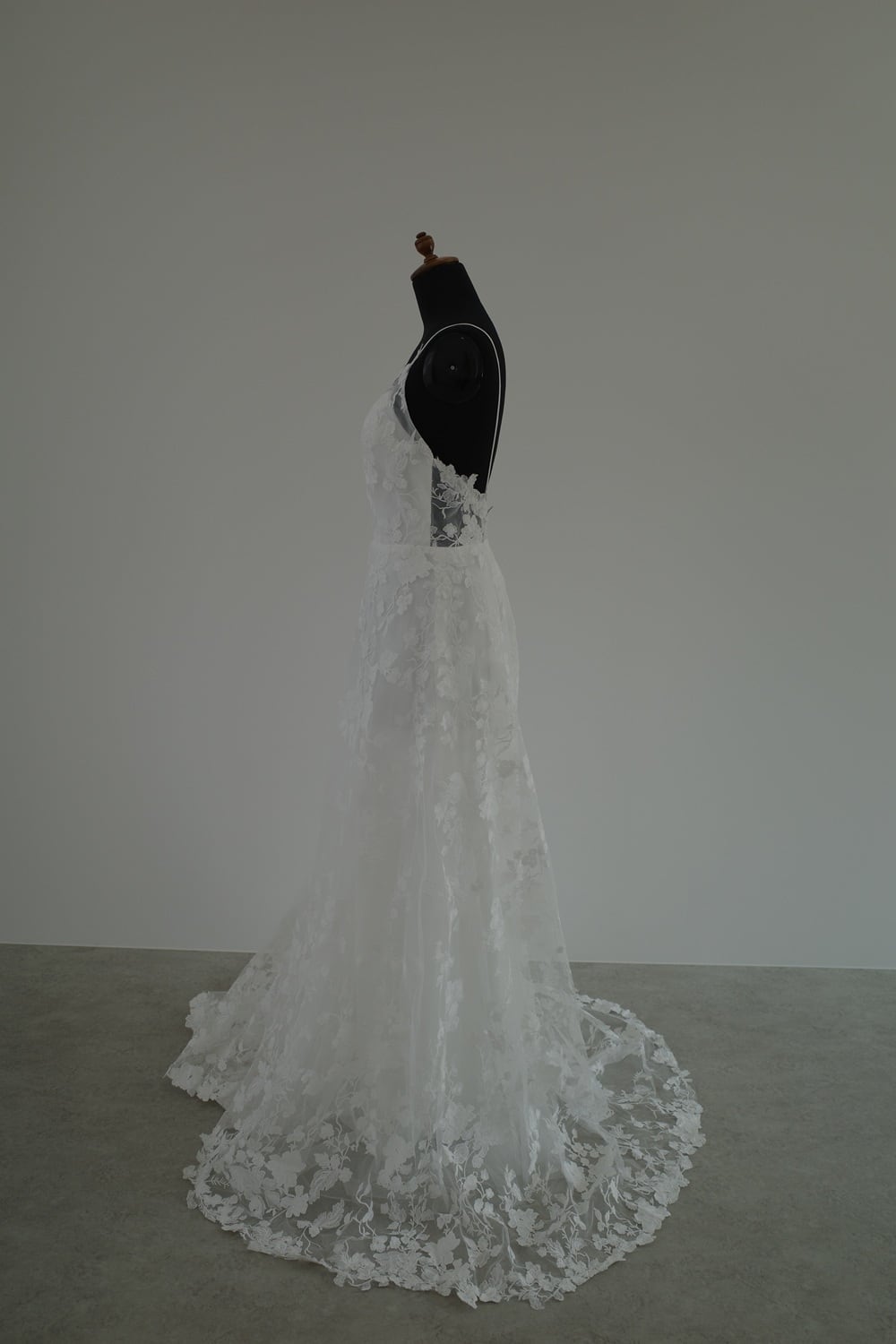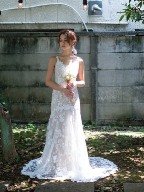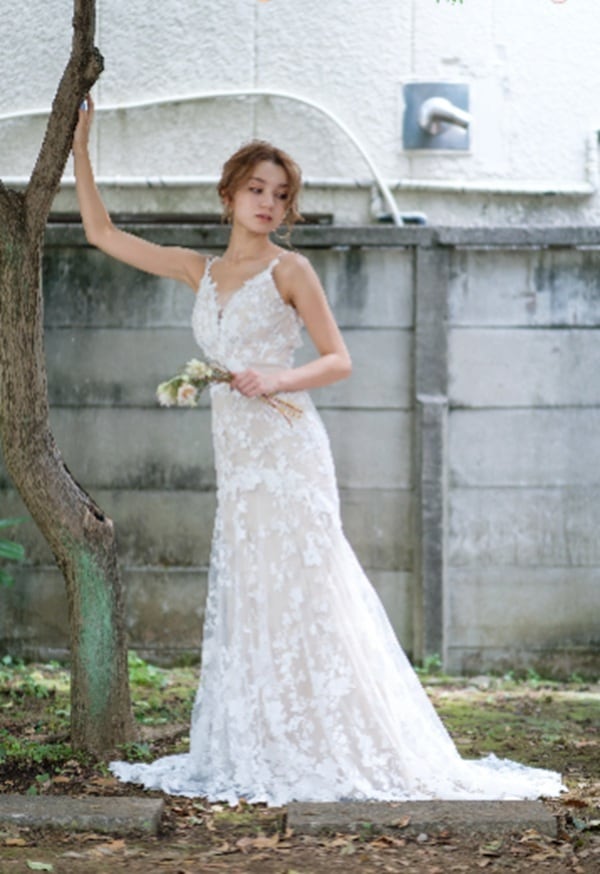 Sample Sale 刺繍レース 背中開き ソフトマーメイドドレス(W230) 【G136】