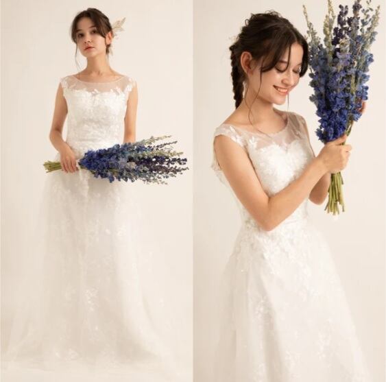 Sample Sale 花柄レース 刺繍 ボートネック ウエディングドレス(W59)【G150】