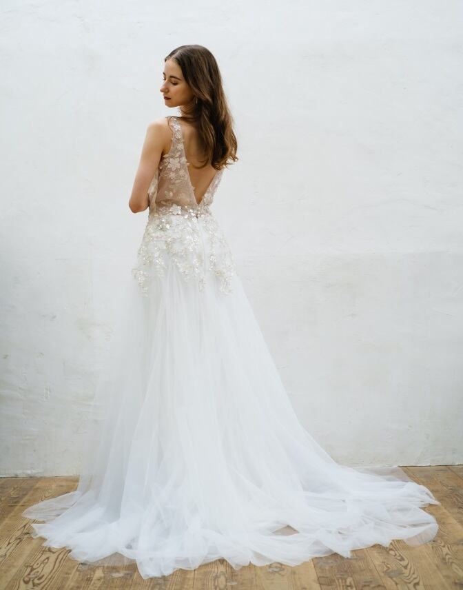 Sample Sale ビーズ刺繍 Vネック チュールドレス(W267)【G154】