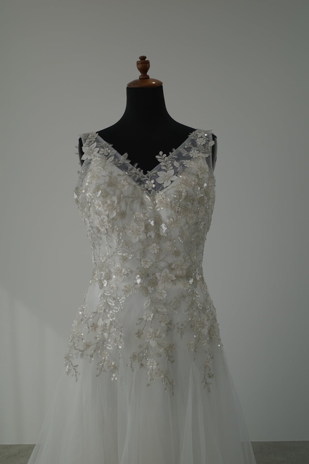 Sample Sale Lサイズ・ビーズ刺繍 Vネック チュールドレス(W267)【G157】