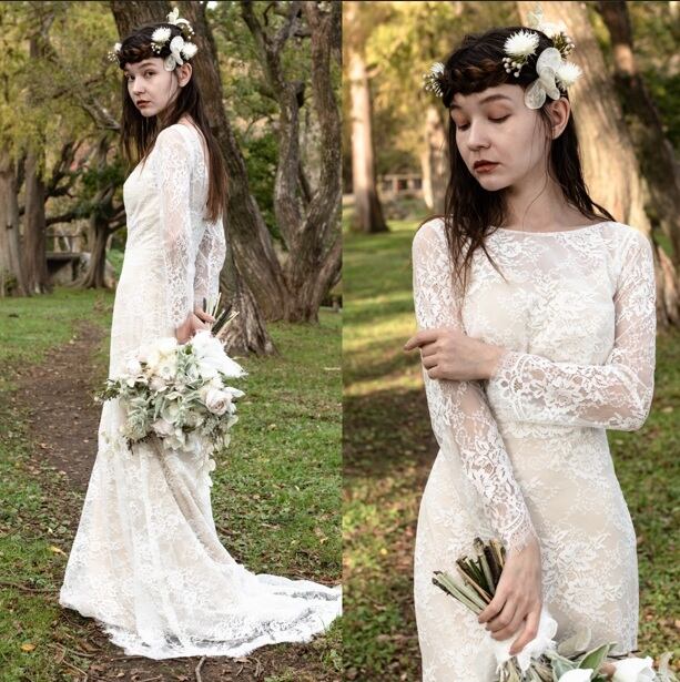 総レースの長袖スレンダードレス。