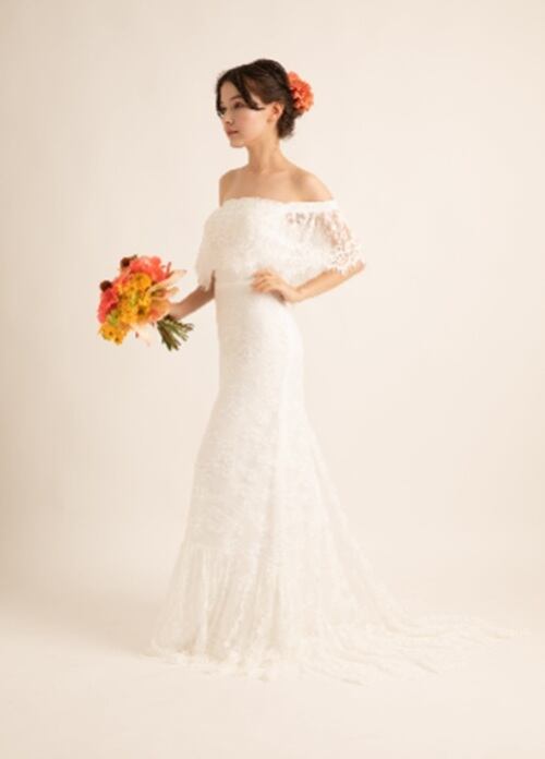 Sample Sale 小花柄レース オフショルダー ソフトマーメイドドレス(W197)【G172】