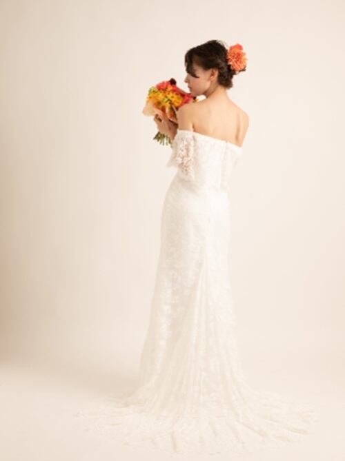 小花柄のクラシカルなレースを使用したソフトマーメイドドレス。
