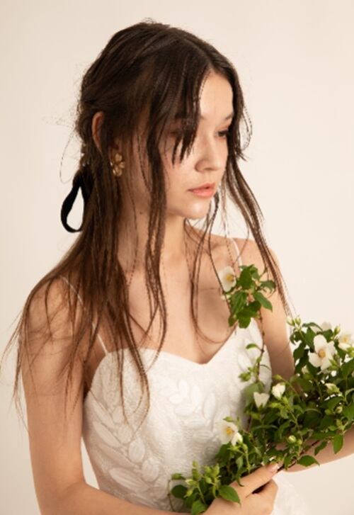 スカートは立体的なお花レースをあしらい、ガーリーで華やかな雰囲気に仕上げました。