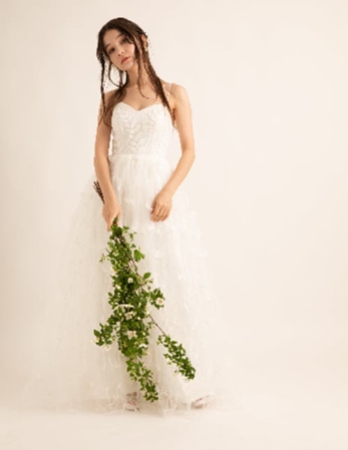 トップ部分の生地にはリーフ柄の刺繍が施されております。