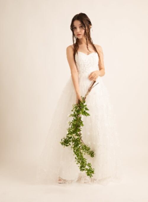 トップ部分の生地にはリーフ柄の刺繍が施されております。