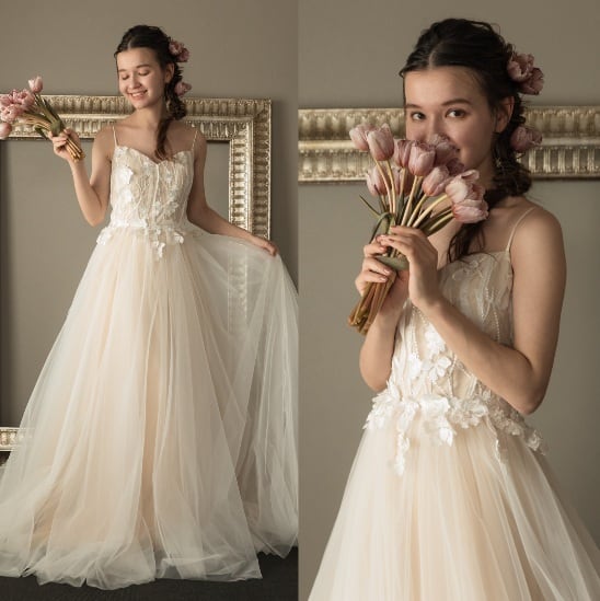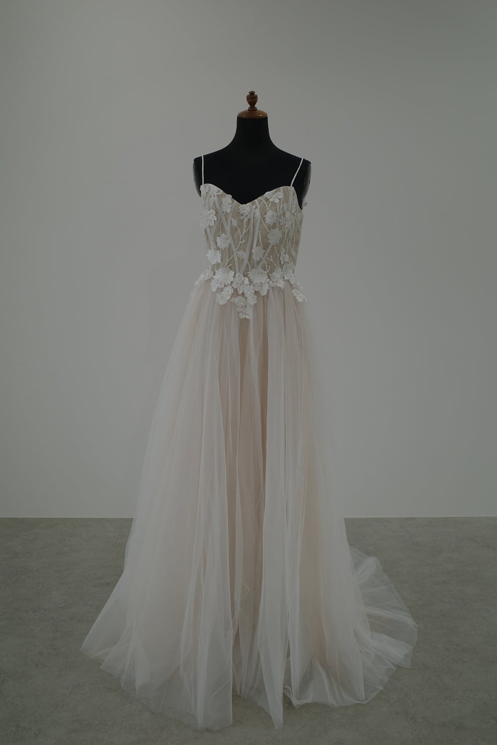 Sample Sale シャンパンカラー 刺繍 キャミソール チュールドレス(W154)【G207】