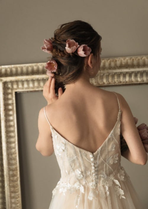 程よくふんわりとしたチュールスカートは、大人可愛いウエディングシーンを演出してくれます。
