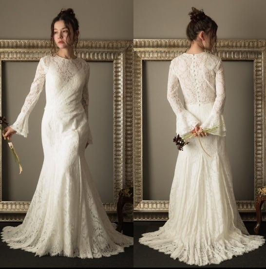 Sample Sale 総レース フレア袖 ソフトマーメイドドレス(W42)【G210】