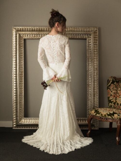 Sample Sale 総レース フレア袖 ソフトマーメイドドレス(W42)【G211】