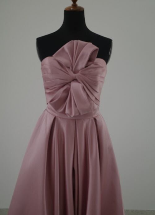 胸元の装飾と艶感のあるサテン生地が