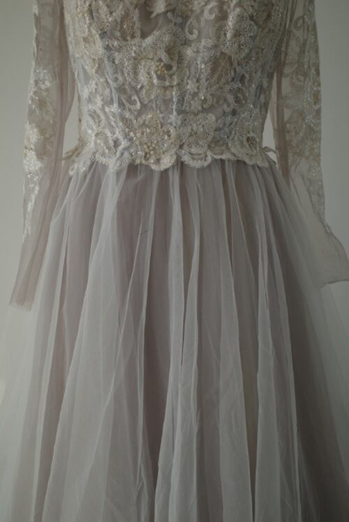 Sample Sale 刺繍 Aライン チュール グレー カラードレス(W87)【G226】