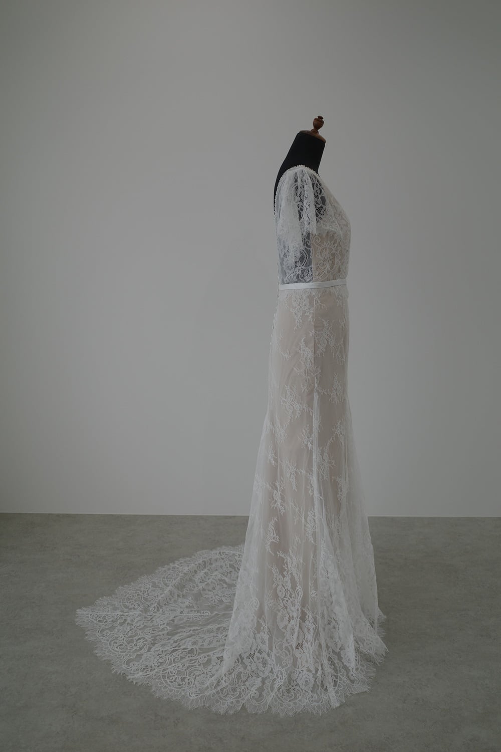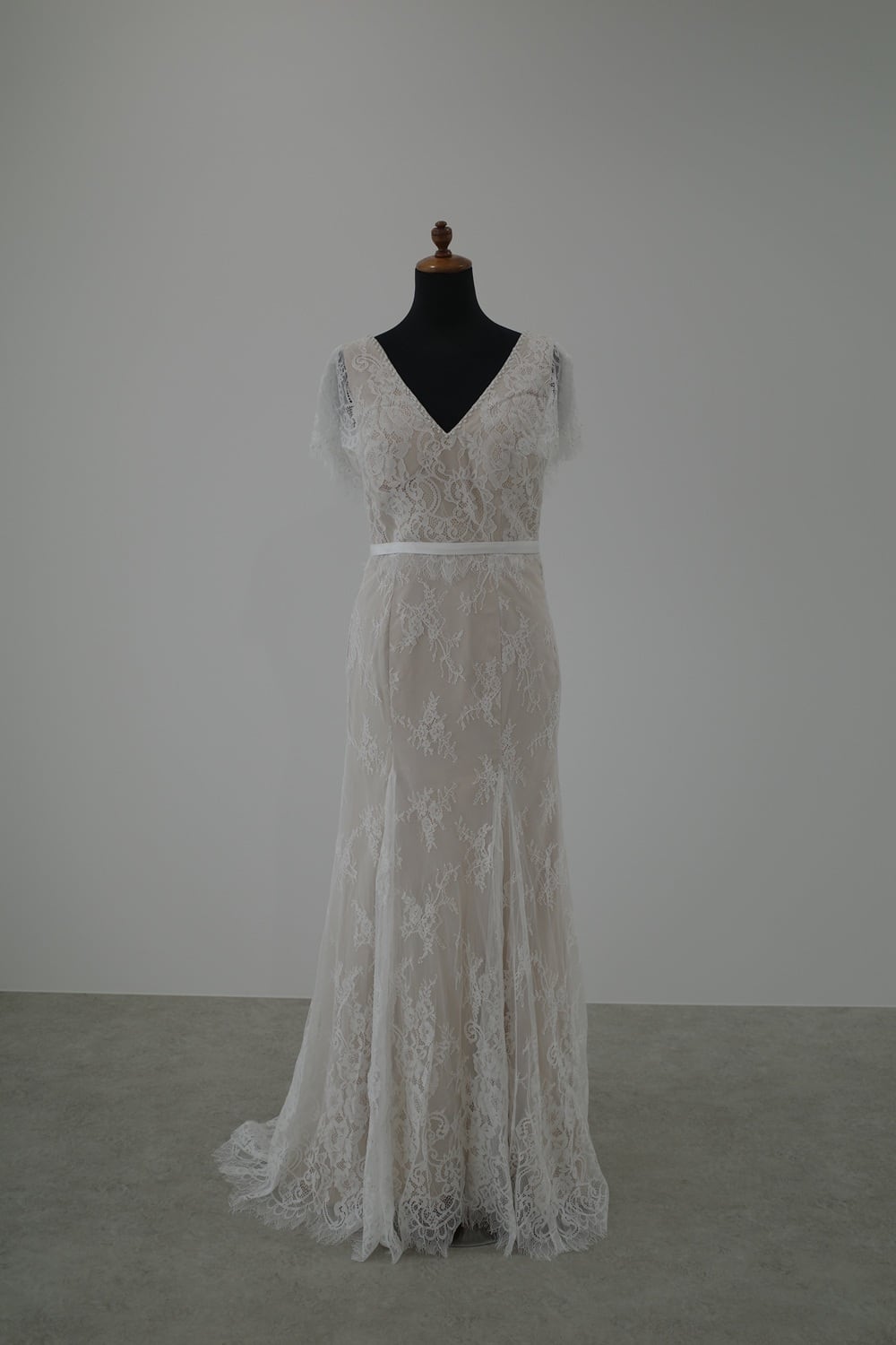 Sample Sale Vネック レース クラシカル マーメイドウエディングドレス(W51)【G227】