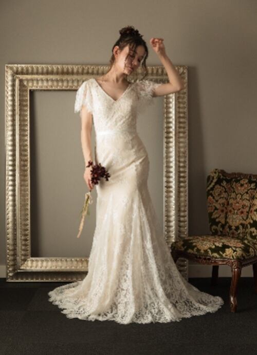 女性らしいシルエットで、大人花嫁にぴったりなドレスとなっております。