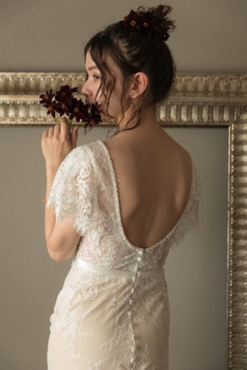 大胆な背中のカッティングはバックスタイルをエレガントに演出してくれます。
