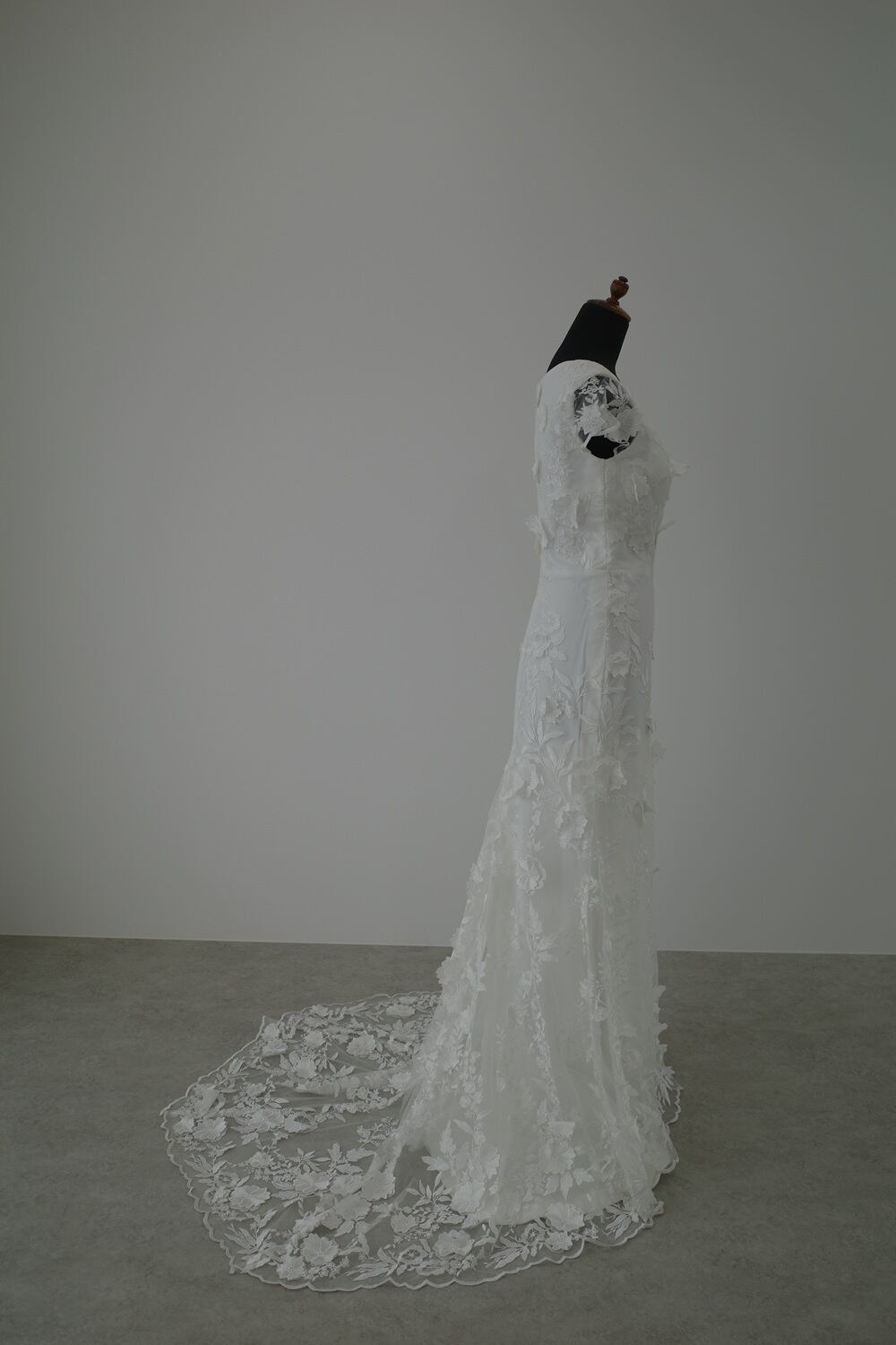 立体的なお花モチーフのレースが大人可愛いソフトマーメイドドレス。