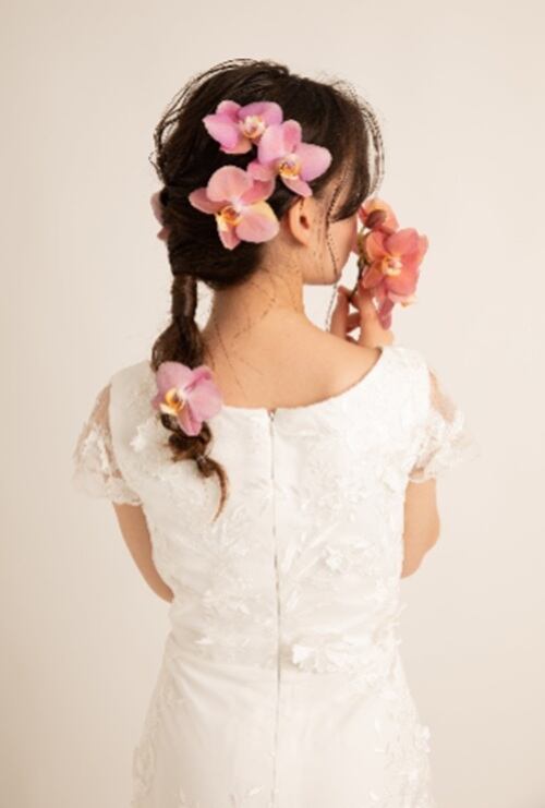 Sample Sale 半袖 3Dフラワーレース ソフトマーメイドドレス(W194)【G235】