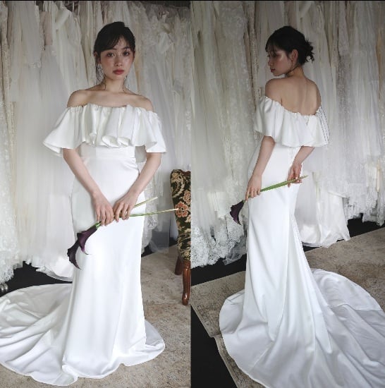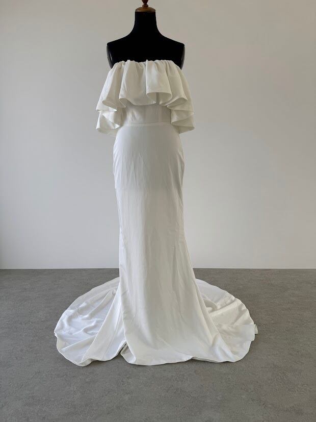 Sample Sale オフショルダー フリル ソフトマーメイドドレス ホワイト(W300WH)【G239】