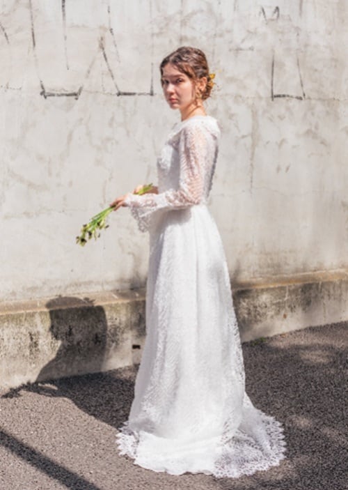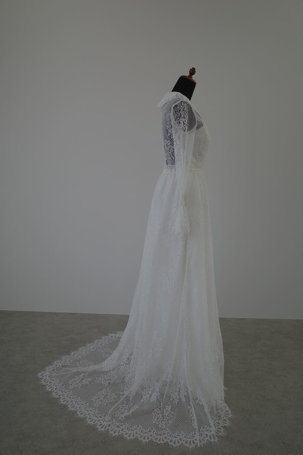 Sample Sale 総柄レース 襟付き クラシカル 長袖 ウエディングドレス(W53)【G240】