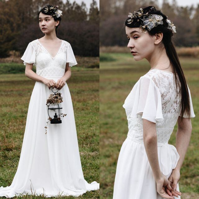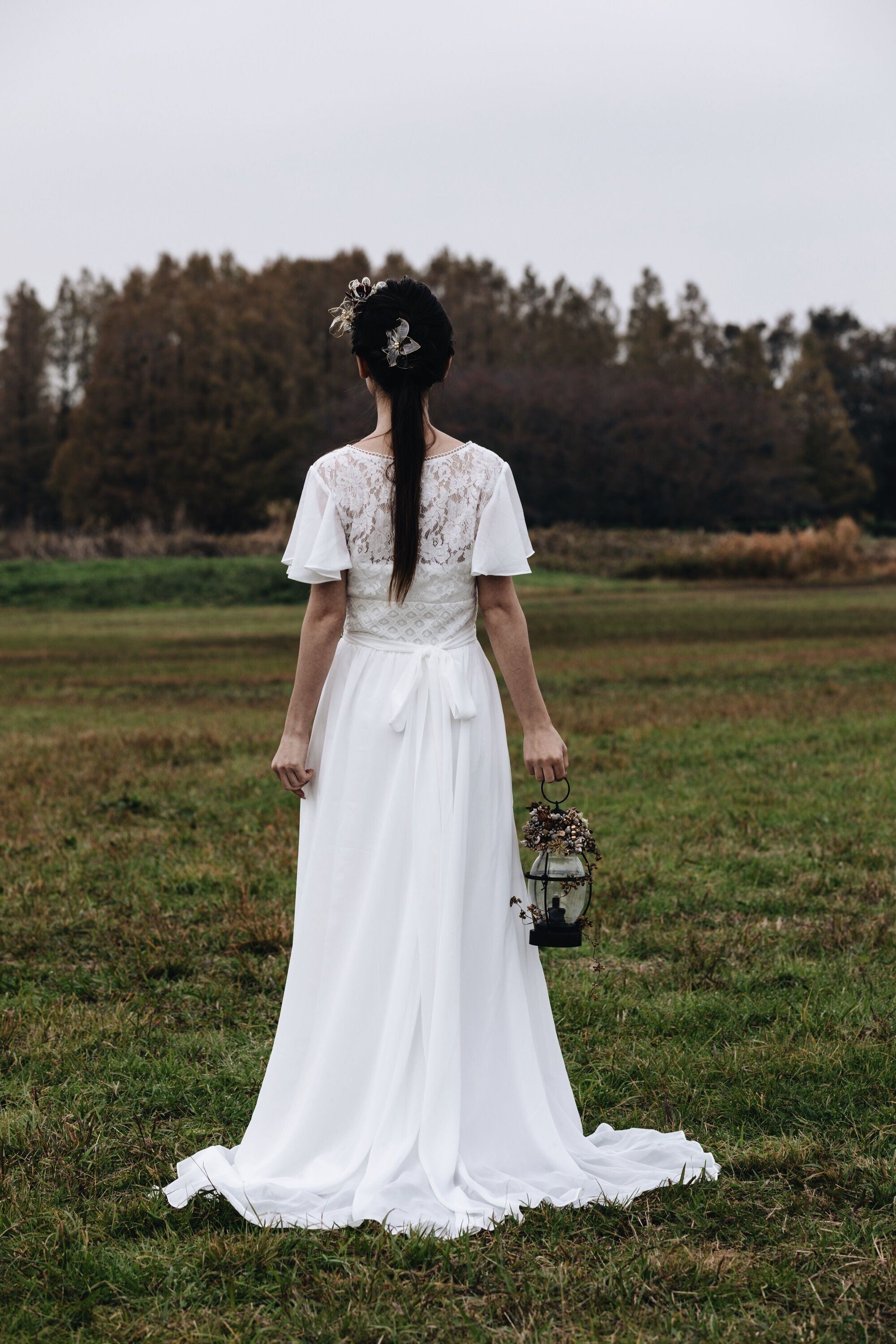 Sample Sale レース フレア袖 シフォンドレス(W180)【G255】